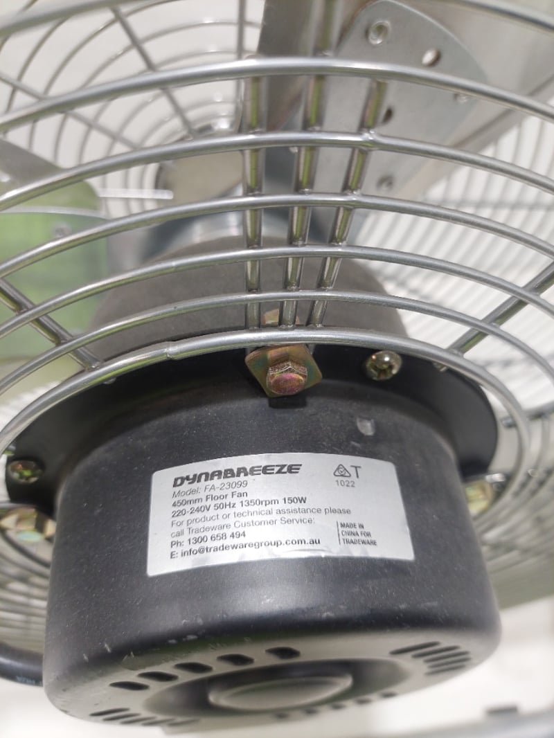 Dynabreeze 450mm (18 inch) industrial floor fan. Model: FA-23099Note item is untested, signs of wear.