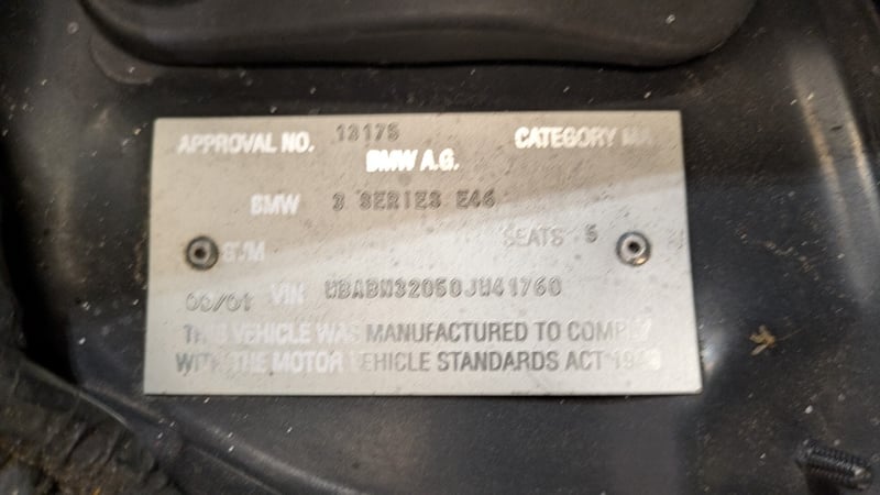 2001 BMW e46 325Ci 325iYear: 2001Make: BMWModel: e46Series: E46Badge: 325Ci 325i Body: 2-Door CoupeDrive Type: Rear wheel driveOdometer: Indicating 227,534 KilometersEngine: 2.5 I6 PetrolTransmission: 5-Speed AutomaticColour: GreySeats: 5Description/extras: Owners manual. This asset will be supplied with registration via vehicle transfer form signed by the current owner, Vehicle is registered until 22 April 2026 sold as is where is - No statutory warranty. WA BUYERS ONLY.Vendor advises: After market exhaust and rims. Lowered suspension Paint Imperfections. VIN: WBABN32050JW41760ENG No: 30579830(Key #A16)Lloyds stock #1038631+1Motor Dealer Licence #MD27332#PCV