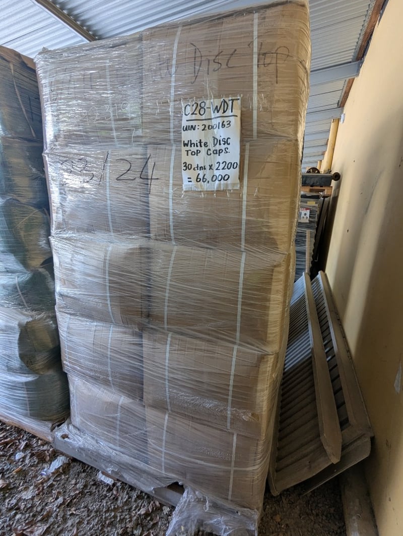 28mm White Disc Top Caps Approx: 66,000 to pallet SOLD AS PALLET LOT
