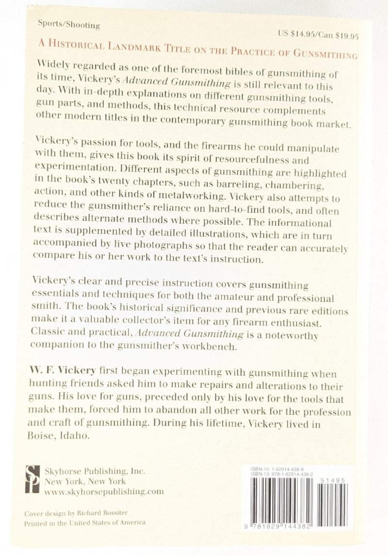 ADVANCED GUNSMITH BOOK, 75 YEARS EDITION, W.F VICKERY. 2012 - 2015Item Size: Height: 1cm, Width: 1cm, Depth: 1cm, Weight: 1KgCondition: Good - Refer To ImagesFC2A163011+69