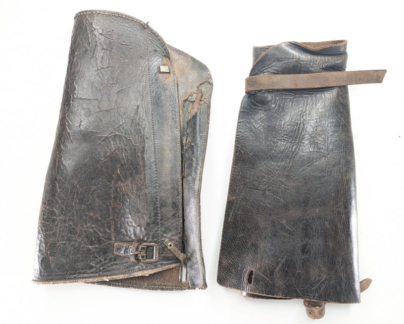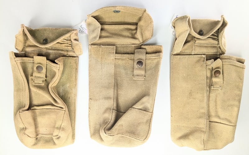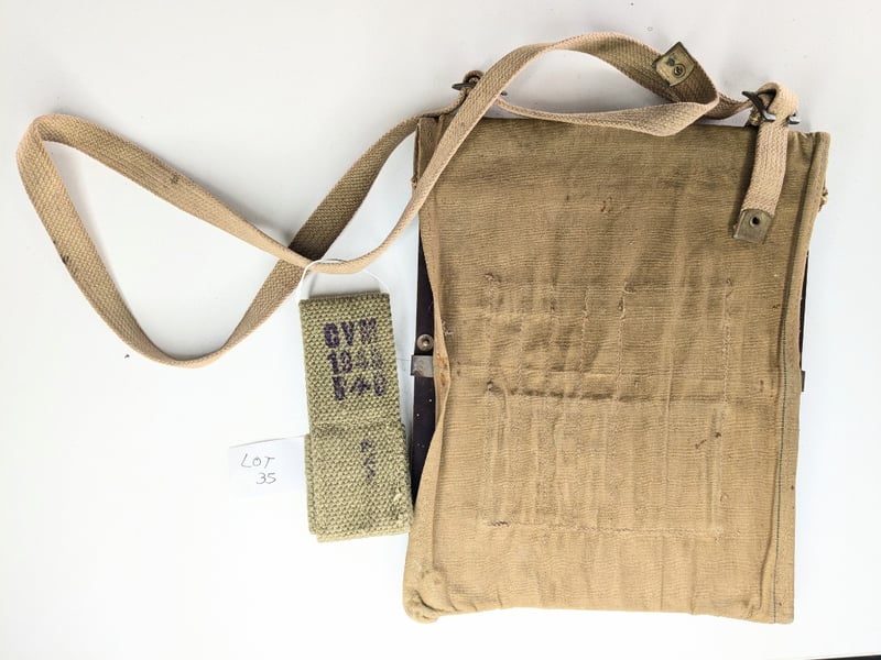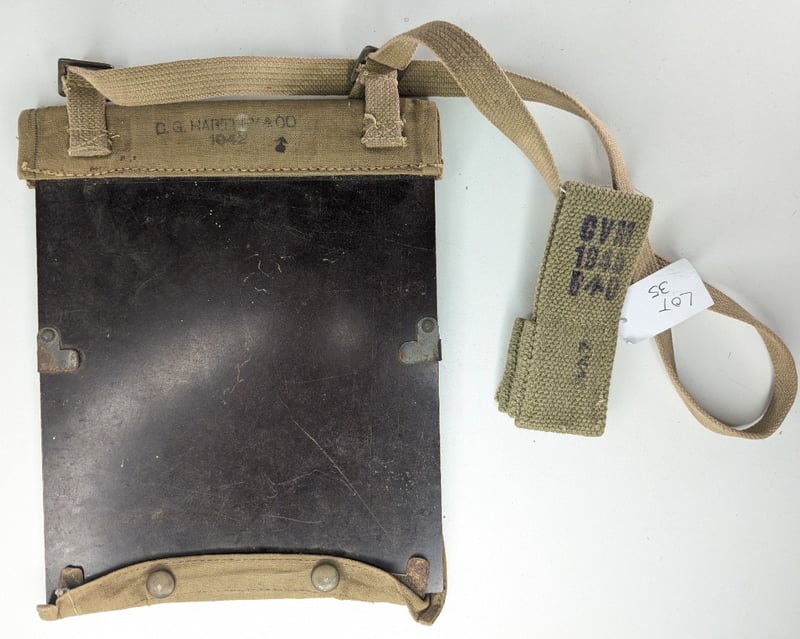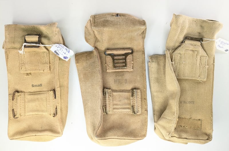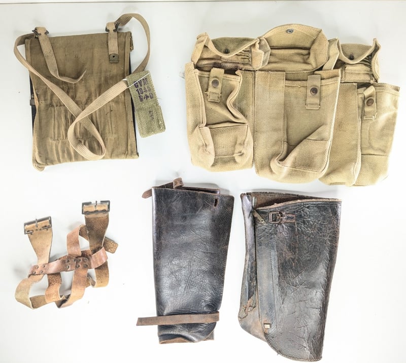 3 Wwii P37 Webbing Puches, 1 Pair Leather Gators, Wwii 1945 Frog Canvas (Marked), 1 X Australian Wwii 1942 Map Board With Sling (Marked).