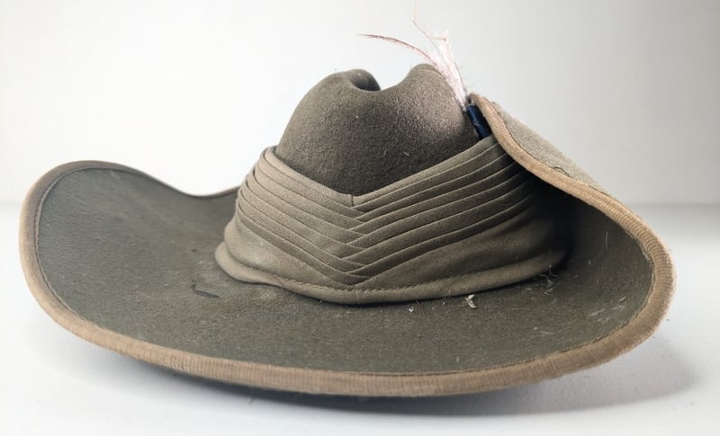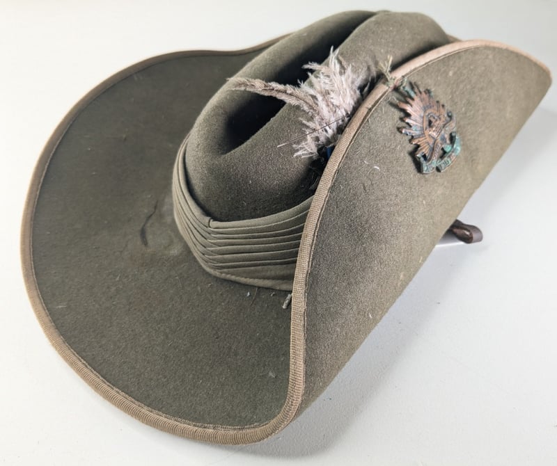 ONWARDS SLOUCH HAT WWII.Item Size: Height: 1cm, Width: 1cm, Depth: 1cm, Weight: 1KgSize 16 3/4. With Original Rising Sun Badge.Condition: Good - Refer To ImagesFC2A163011+31
