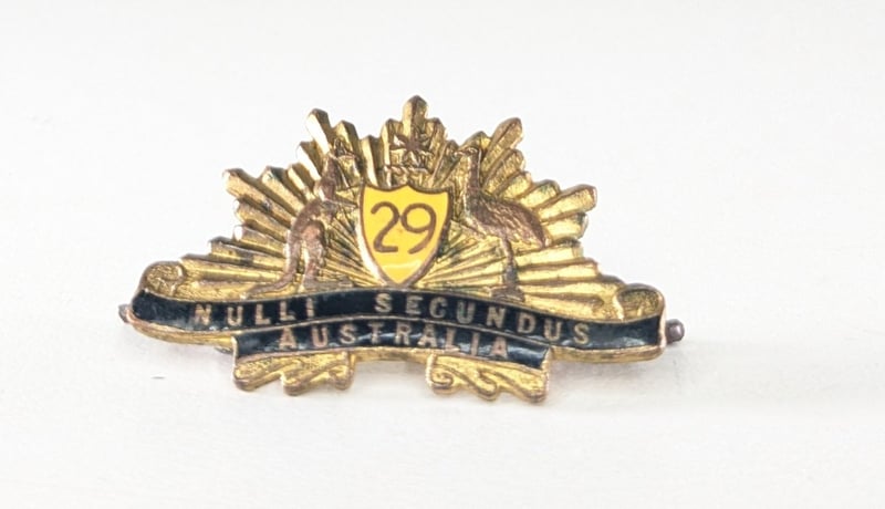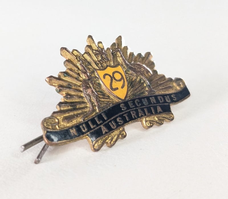 29TH BATTALIAN (EAST MELBOURNE REGIMENT) 1930-1942 BRASS AND ENAMEL COLLAR BADGE.Item Size: Height: 1cm, Width: 1cm, Depth: 1cm, Weight: 1KgCondition: Good - Refer To ImagesFC2A163011+50