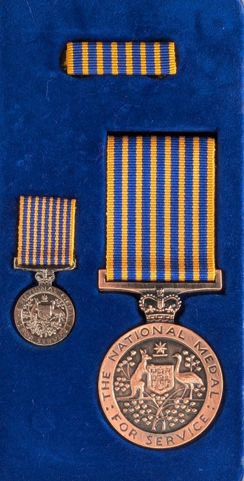 AUSTRALIAN NATIONAL SERVICE MEDALS WITH CASE.Item Size: Height: 1cm, Width: 1cm, Depth: 1cm, Weight: 1KgAustralian National Medal, Royal Australian Mint. With Case, 2 Medals.Condition: Good - Refer To ImagesFC2A163011+57