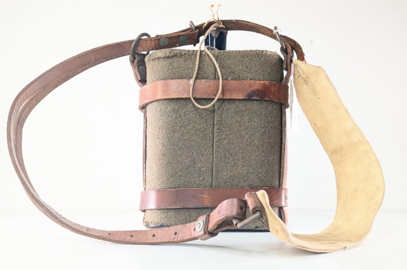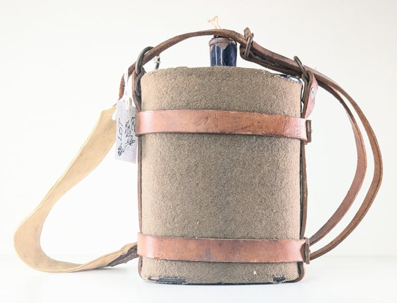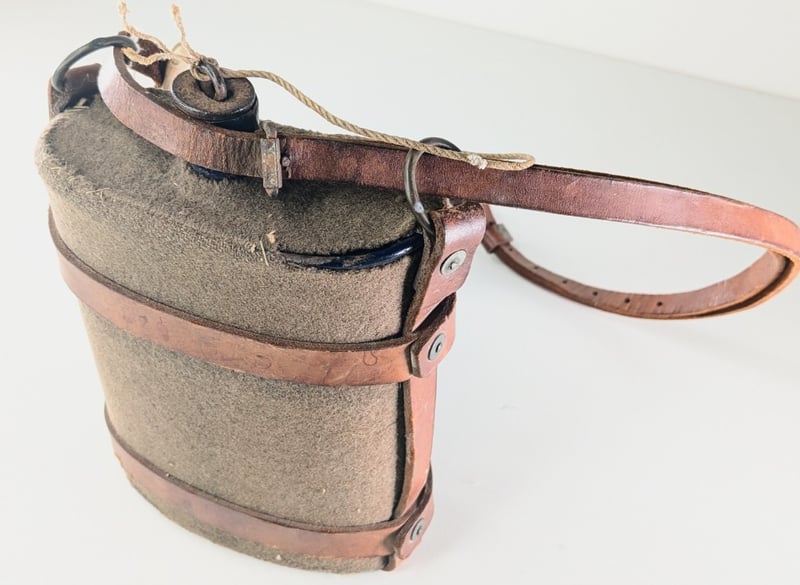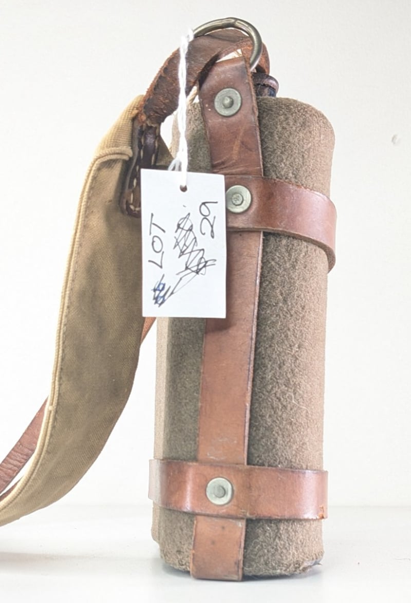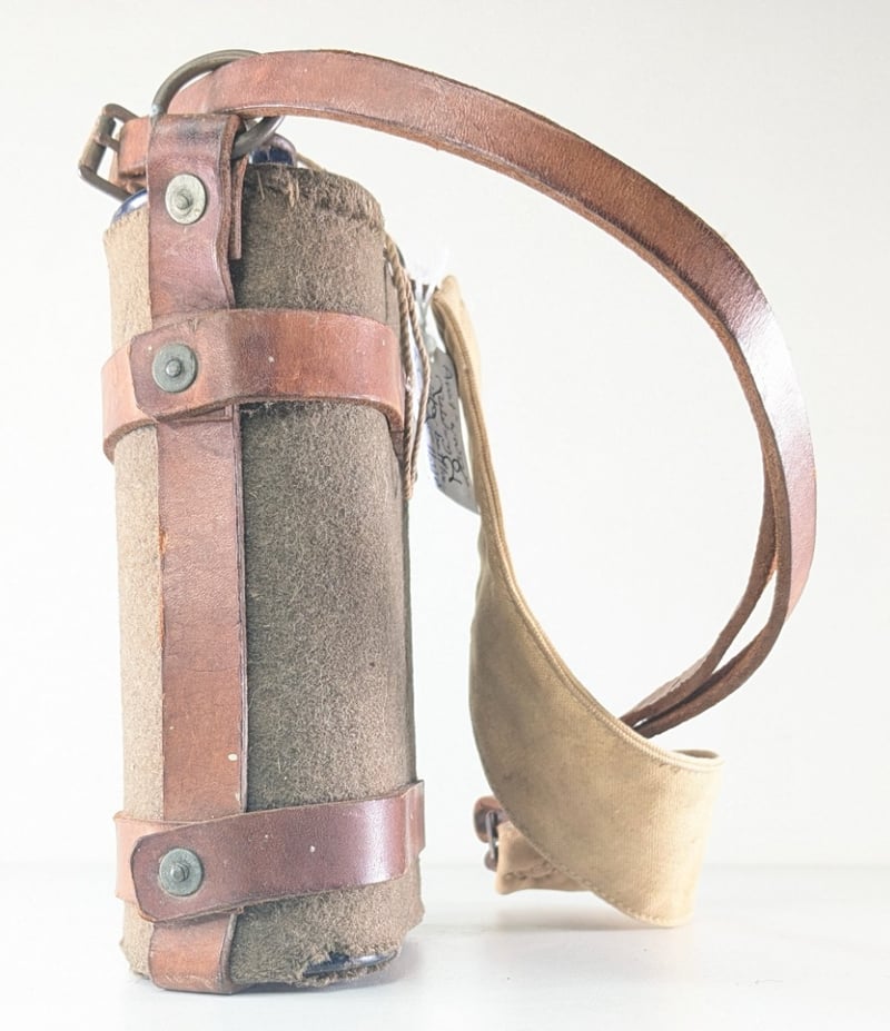 WWII 1942 WATER BOTTLE, WITH LEATHER STRAP.
