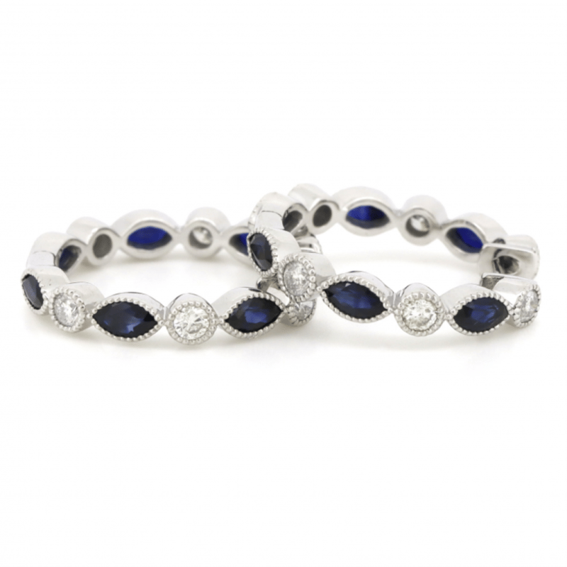 14K WHITE GOLD, BLUE SAPPHIRE AND DIAMOND, DECORATIVE HOOP EARRINGS. The Hoops Feature, 12 Marquise Cut, Royal Blue, Sapphires (1.97Ct Tsw, Included), Bezel Set With Millegrain Detail. Alternating With, 12 Round Brilliant Cut, Diamonds (0.77Ct Tdw, J-K Colour, Si2-I2 Clarity), Bezel Set With Millegrain Detail. The Earrings Have Hinged Snap Back Closures. Valuations Provided by an Independent Third-Party Professional Not Directly Associated With Lloyds Auctions at AUD $$6,790.00This valuation has been conducted by an independent third-party professional. The valuation amount is an assessment by the issuing valuer and does not reflect the auction value of the item. Any inquiries regarding the valuation should be directed to the issuing valuer (refer to contact details on the certificate), as Lloyds Auctions has no affiliation or influence over the valuation, the valuer, or the stated amount. Condition: Good - Refer Images 0+1587