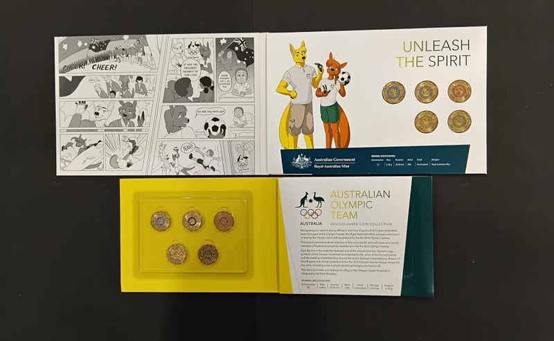 2016 AUSTRALIAN OLYMPIC TEAM COLOUR COIN SET 2 SETS UNC ( 10 COINS) 2016 Australian Olympic Team Colour Coin Set 2 Sets Unc ( 10 Coins) 23528+19