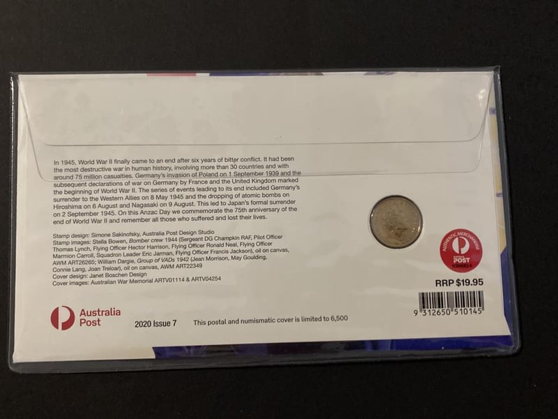 2020 ANZAC DAY $2 FIRST DAY OF ISSUE $2 COLOURED COIN PNC LIMITED EDITION OF 6,500