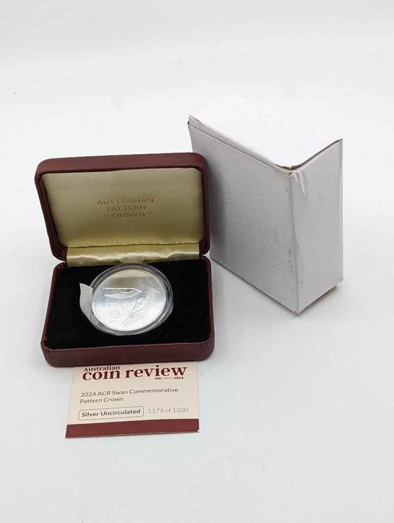 AUSTRALIAN 2024 LIMITED EDITION ACR SWAN COMMEMORATIVE PATTERN CROWN OVER 1OZ SILVER COIN Condition: Proof 235217+9