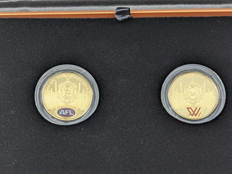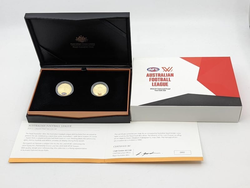 ROYAL AUSTRALIAN MINT 2004 FOOTBALL LEAGUE TWO COLOURED COIN SET Condition: Proof 235217+17
