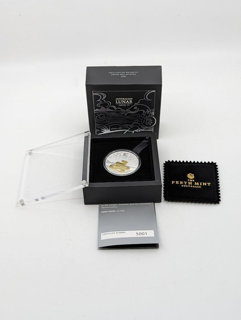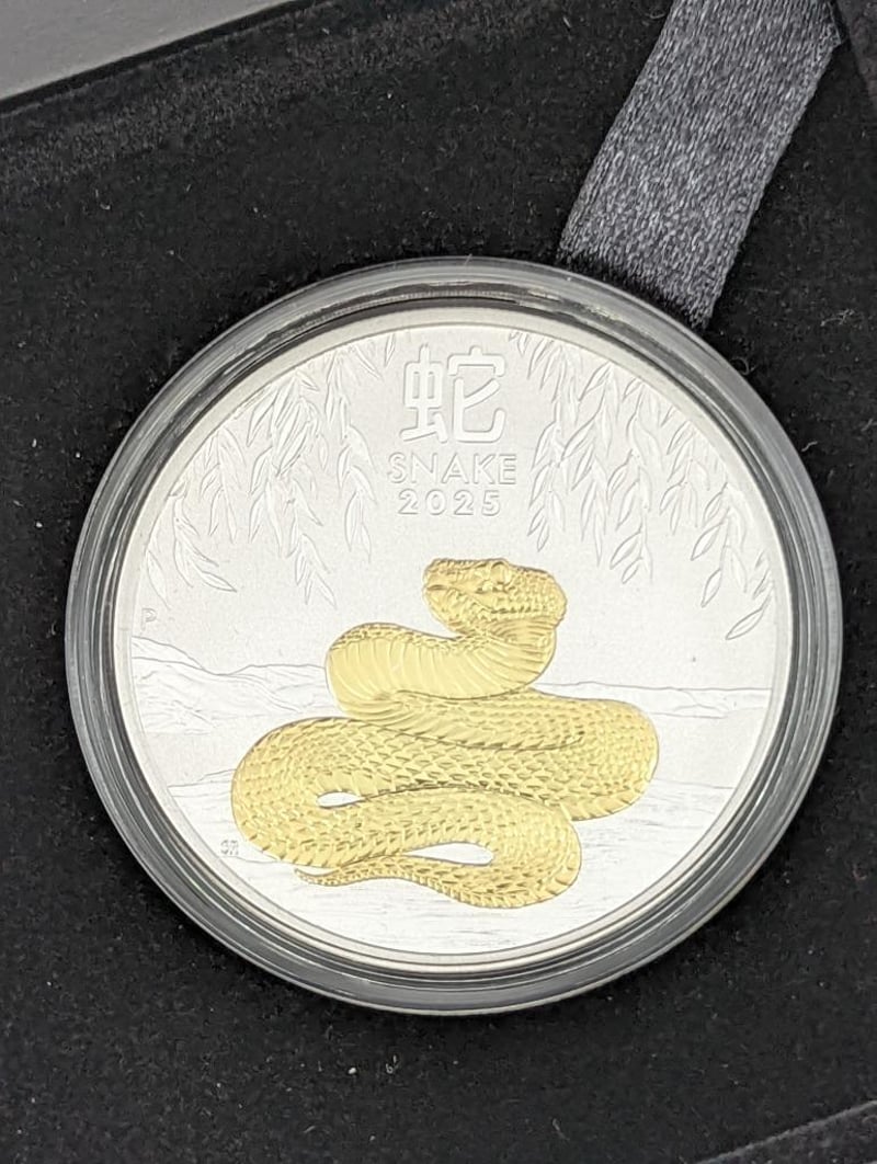 AUSTRALIAN THE PERTH MINT 2025 LUNAR SERIES YEAR OF SNAKE SELECTIVELY GOLD PLATED 1OZ SILVER COIN Condition: Proof 235217+20