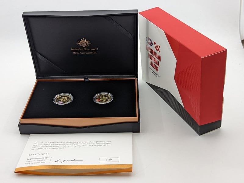 ROYAL AUSTRALIAN MINT 2024 AFL FOOTBALL LEAGUE TWO $2 COLOURED COINS