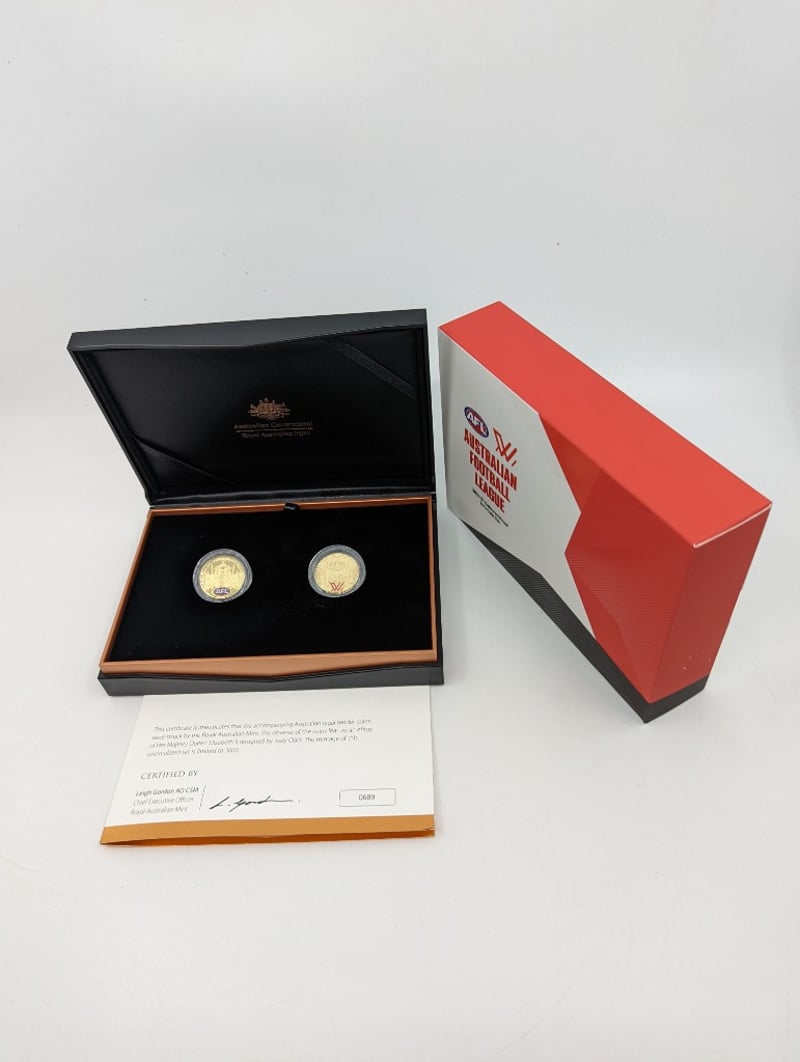 ROYAL AUSTRALIAN MINT 2024 AFL FOOTBALL LEAGUE TWO $2 COLOURED COINSCondition: Proof996802+14