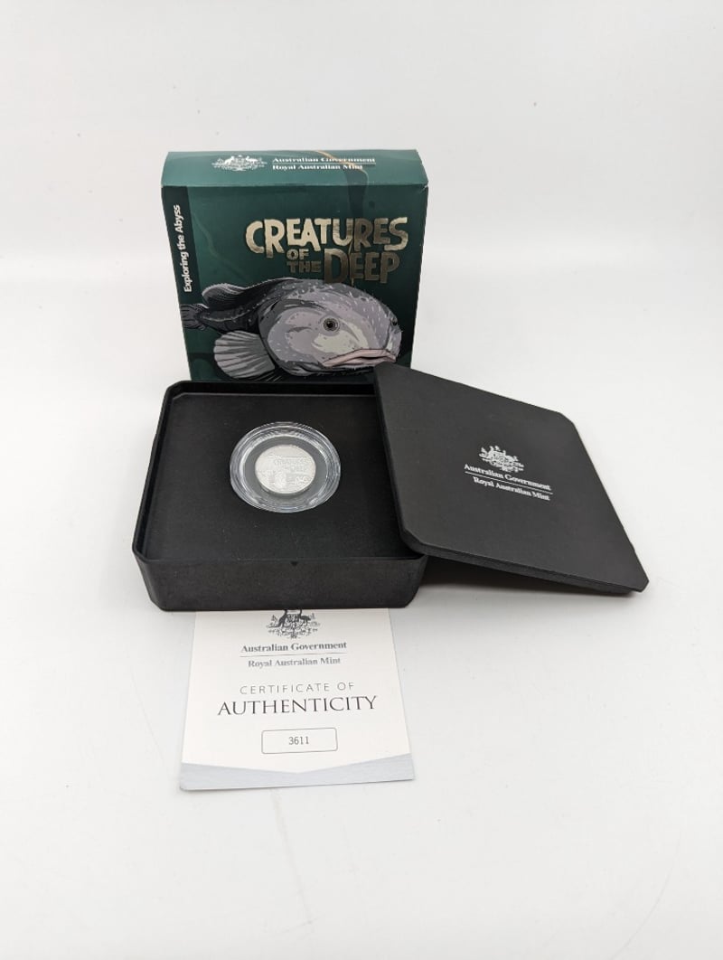 ROYAL AUSTRALIAN MINT 2023 CREATURES OF THE DEEP SILVER COINNote: Box Has Small DamageCondition: Proof996802+16