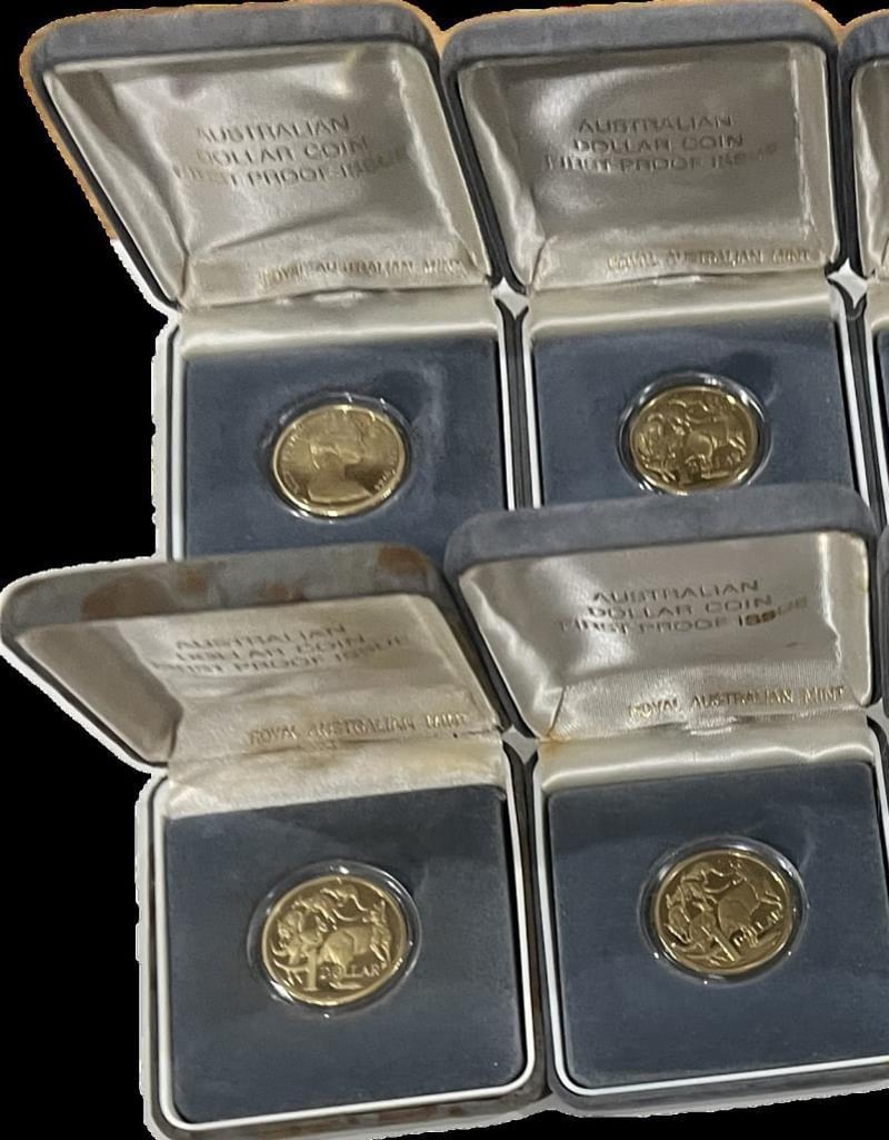 4 X 1984 AUSTRALIA FIRST $1 DOLLAR PROOF COINS QUEEN ELIZABETH IN CASE SCARCE HIGH RETAIL VALUE 23528+21