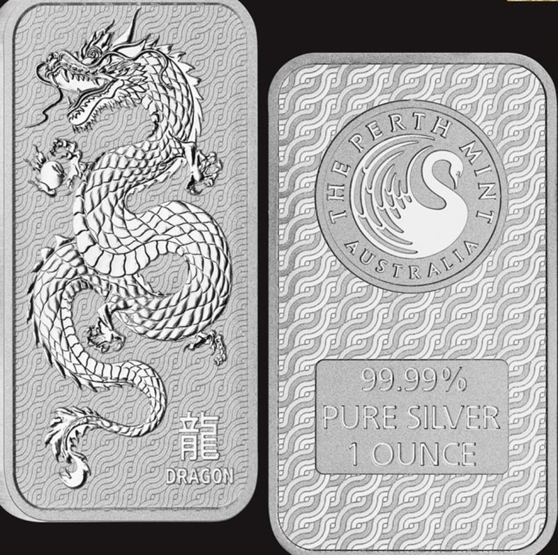 1-OUNCE SILVER DRAGON BAR PERTH MINT 311146+24