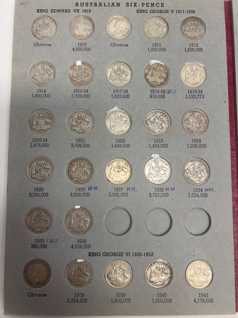 AUSTRALIAN SIX PENCE COIN ALBUMVILLAWOOD580992+1