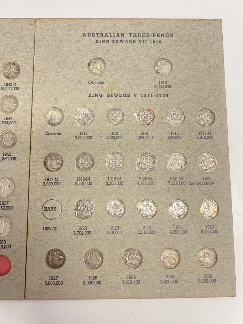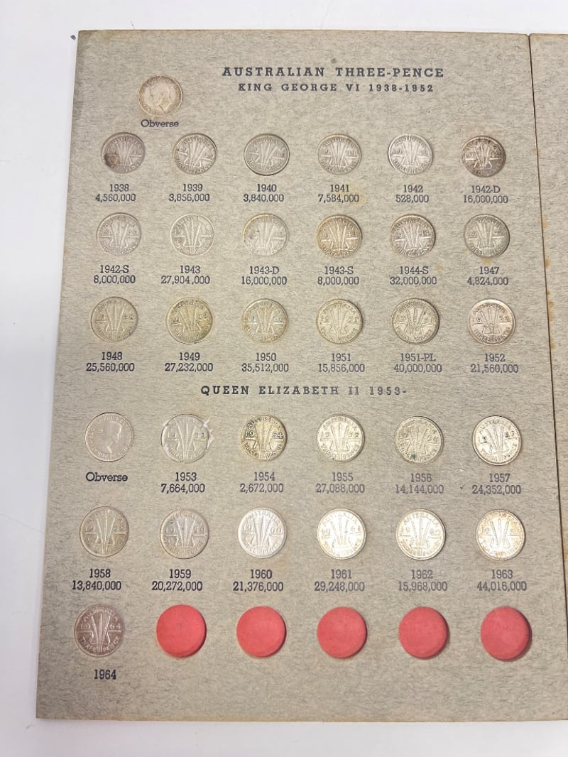 AUSTRALIAN THREE PENCE COIN ALBUMVILLAWOOD580992+2