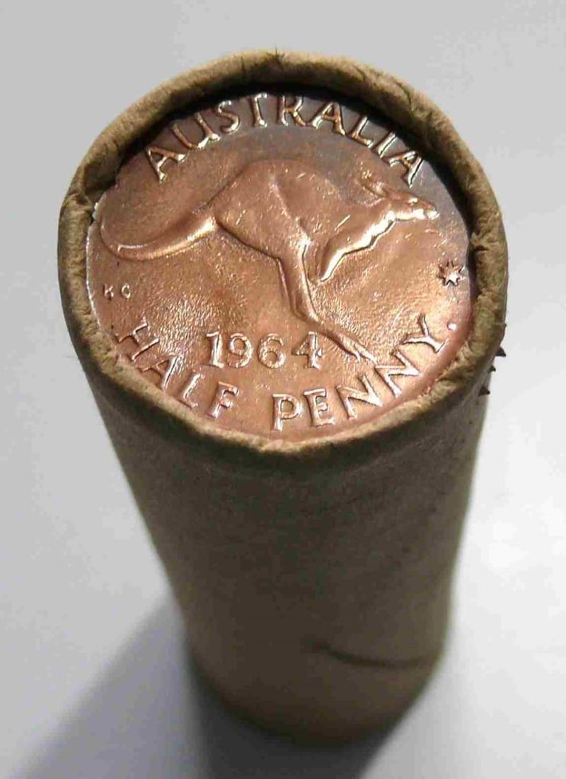 ROLL OF 1964 QEII, AUSTRALIAN HALF PENNY (50X CIRCULATED COINS IN A ROLL). 488381+9