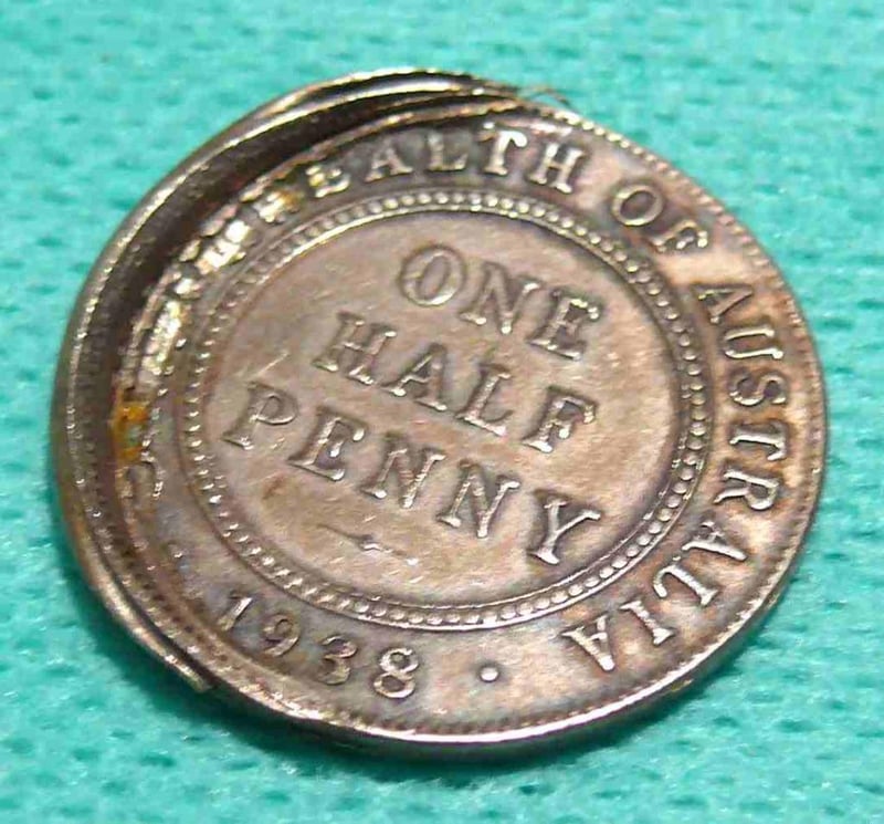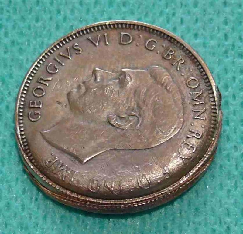 ERROR 1938 KGVI, MIS STRICK HALF PENNY IN PROTECTIVE 2X2 488381+20