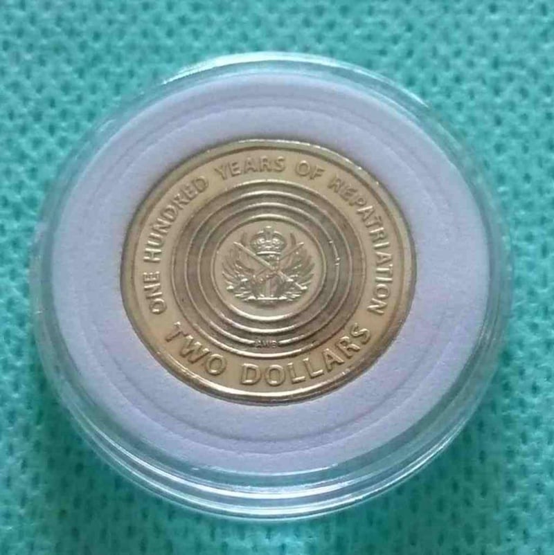 ERROR 2019, 100 YEARS OF REPATRIATION $2 COLOUR COIN WITH MISSING PAINT (NO COLOUR). 488381+22