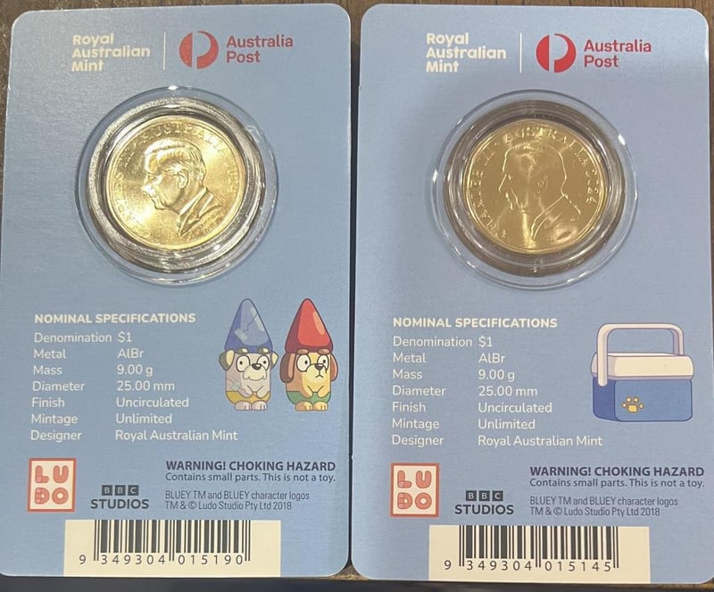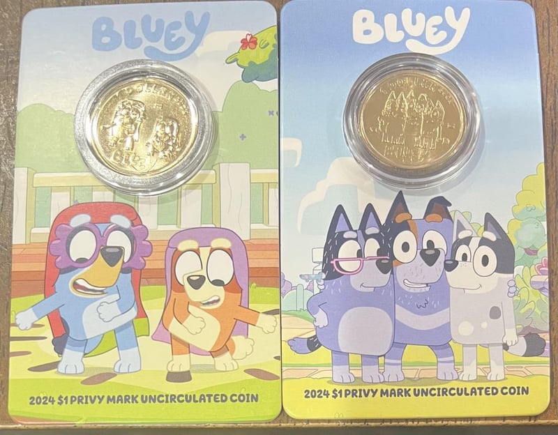 2024-$1 BLUEY PRIVY MARK UNCIRCULATED COIN SOLD OUT ISSUE AVAILABLE IN AUSTRALIA POST X 2 CARDED COIN 0311153+16