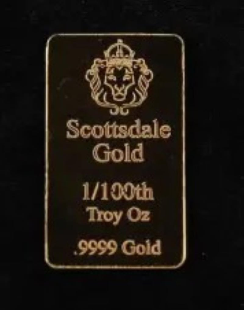 SCOTTSDALE LION 1/100OZ 9999 GOLD BULLION BAR Condition: Good - Refer Images 0311153+140