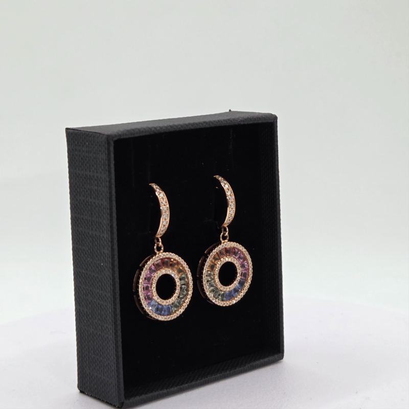 2.47CT FANCY MULTICOLOUR SAPPHIRE EARRINGS – EMERALD CUT – CERTAUTH CERTIFIED