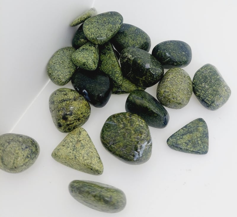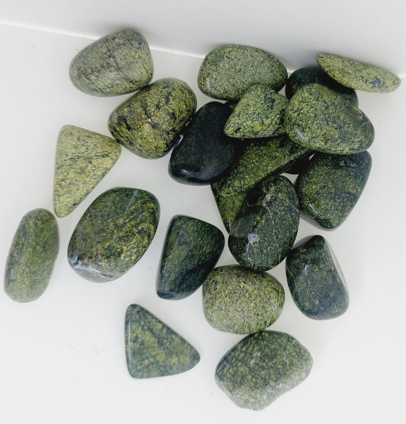 ASSORTED BAG OF SNAKESKIN JASPER CRYSTALS.