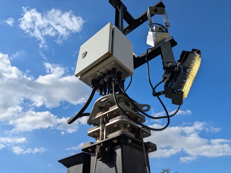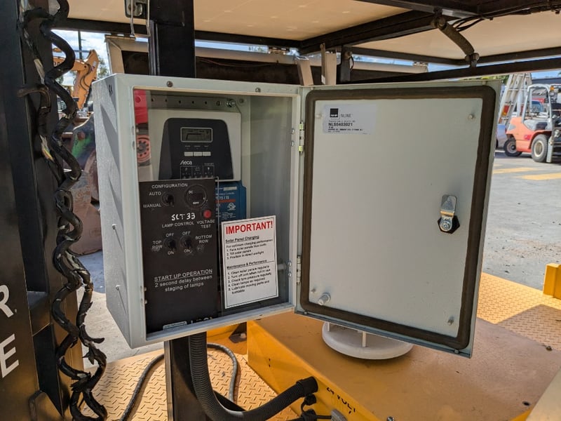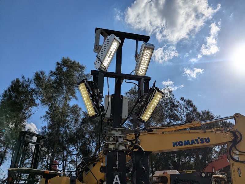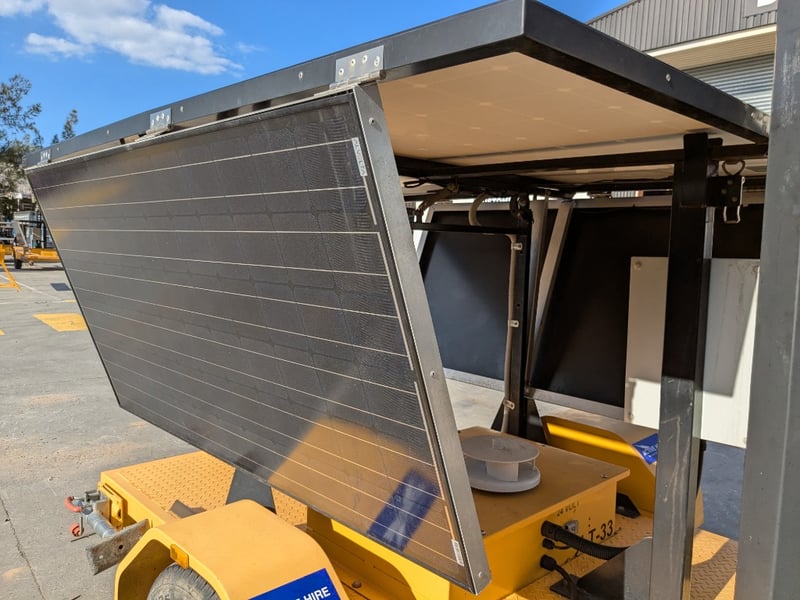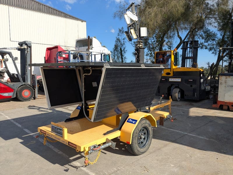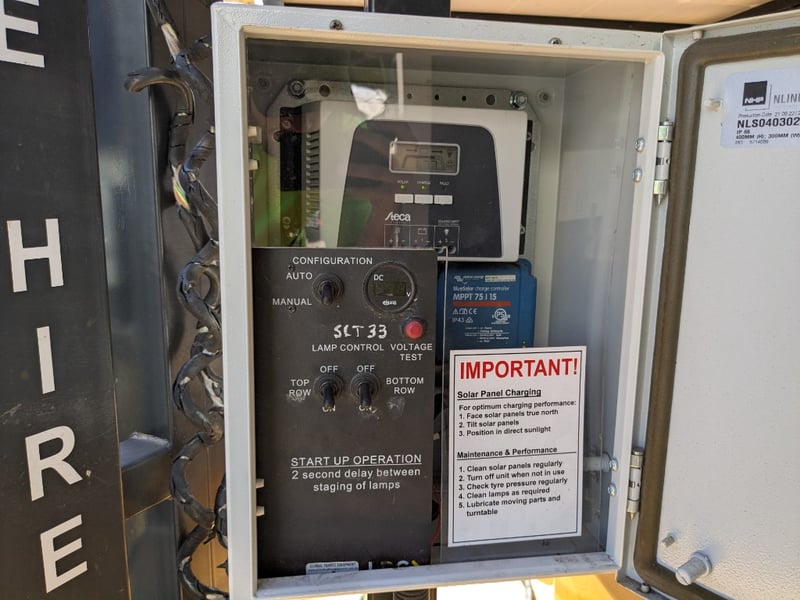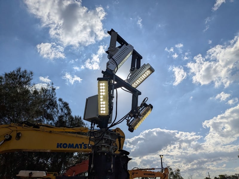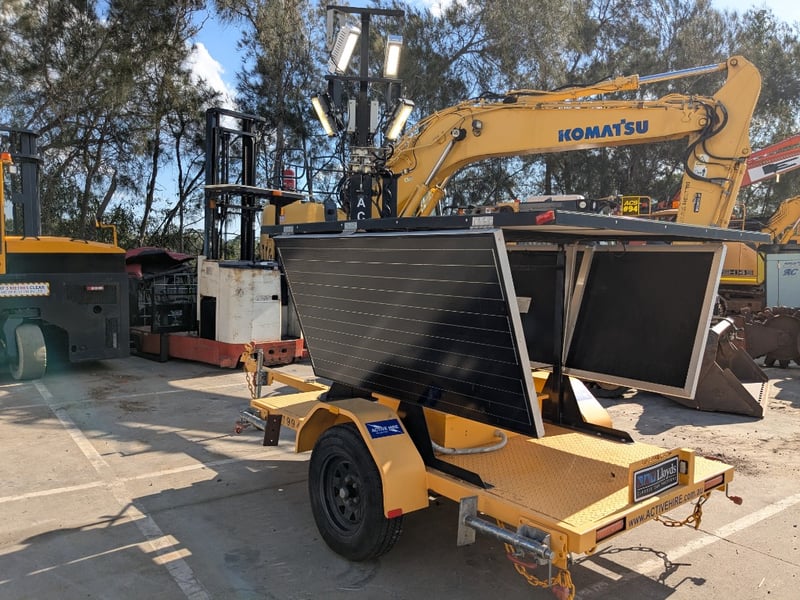 Description: Jockey Wheel, stabilising legs, telescopic light tower, 4 light sections, fuse box, All lights appear to be in working order, light tower height from ground up 7.1mts approximately, trailer length 3mts, 1.3mts wide approximately