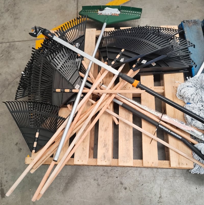 Assorted Pallet of Items, Including Fiaskars PowerGear X UPX82 Tree Pruner, General Garden Rakes, And MoreDimensions: 160cm (W) X 160cm (D) X 40cm (H)Note: Minor Marks and Scratches, Inspection RecommendedSold As Lot