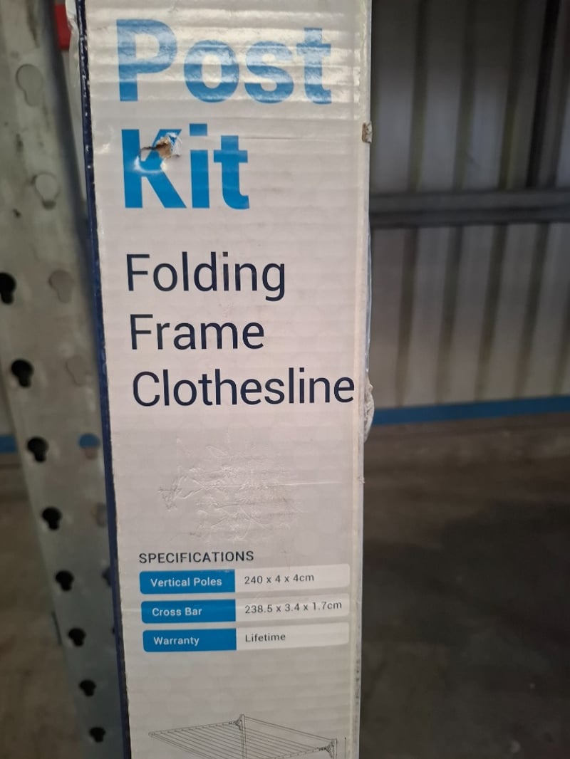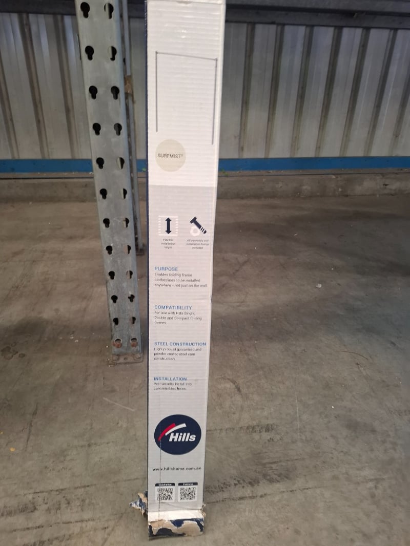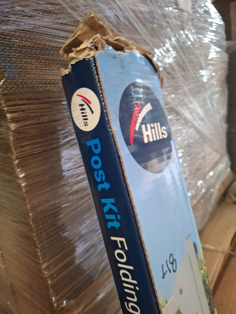 Hills folding frame Post Kit, 24cm (H) X 4cm (W) X 4cm (D)Cross bar - 239cm (H) X 3.4cm (W) X 1.7cm (D)Note: Box has damage at both ends.Inspection Recommended.