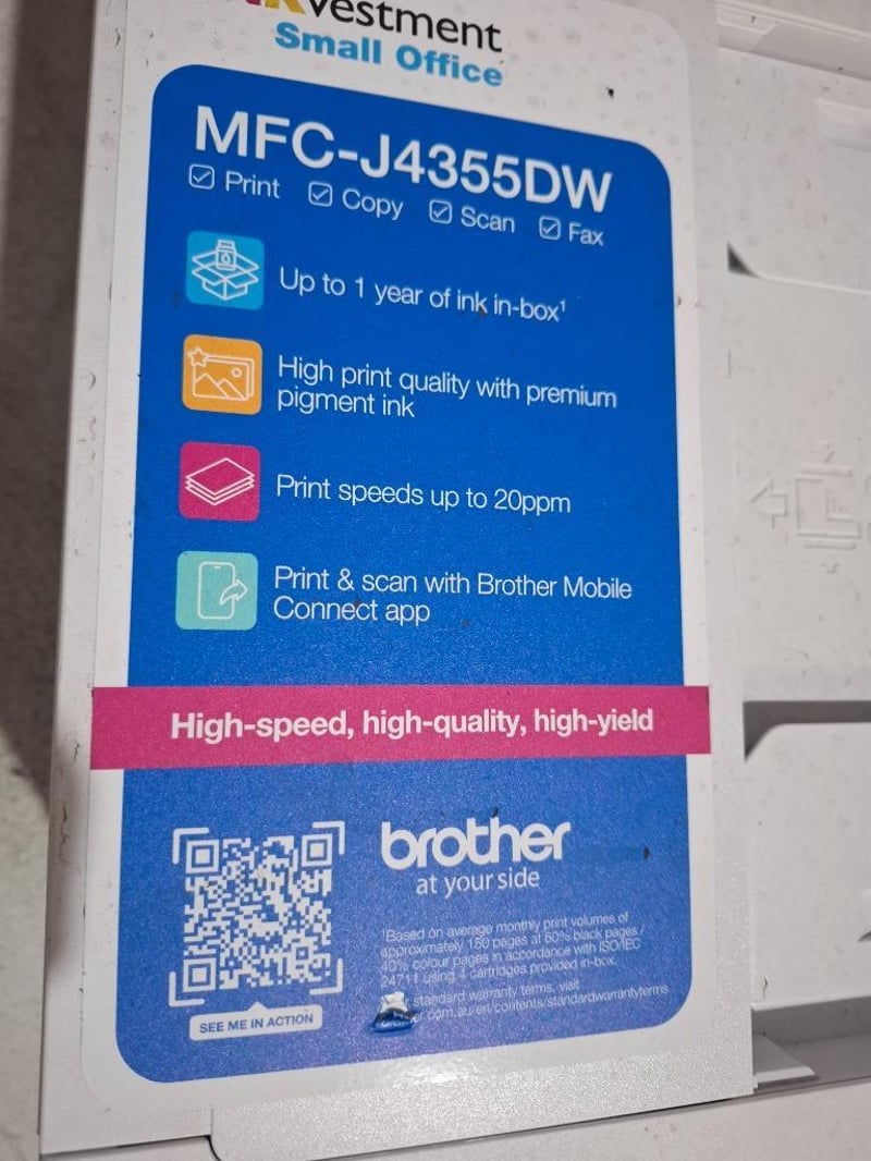 Display, RRP $148.00 Brother INKvestment MFC-J4355DW Multifunction PrinterNote: Unknown Working Condition, Power Cable Not Included