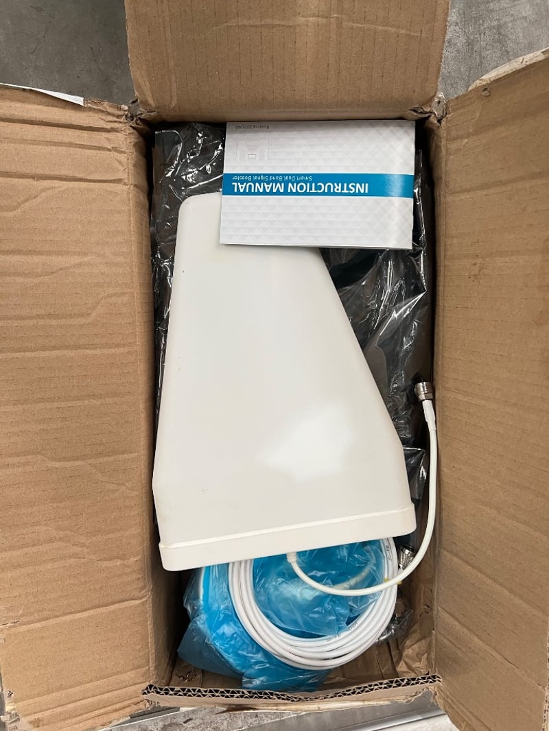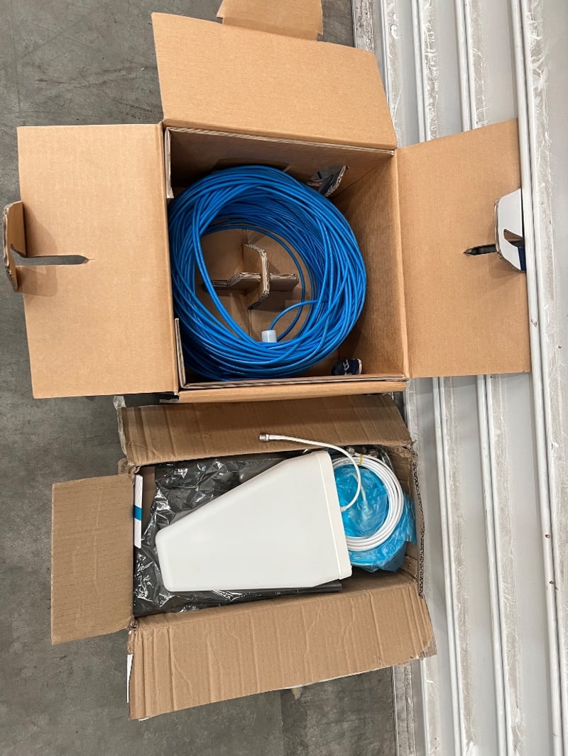 Assorted internet equipment, includes; LAN cable, outdoor antenna, assorted brands/ models Sold as lot