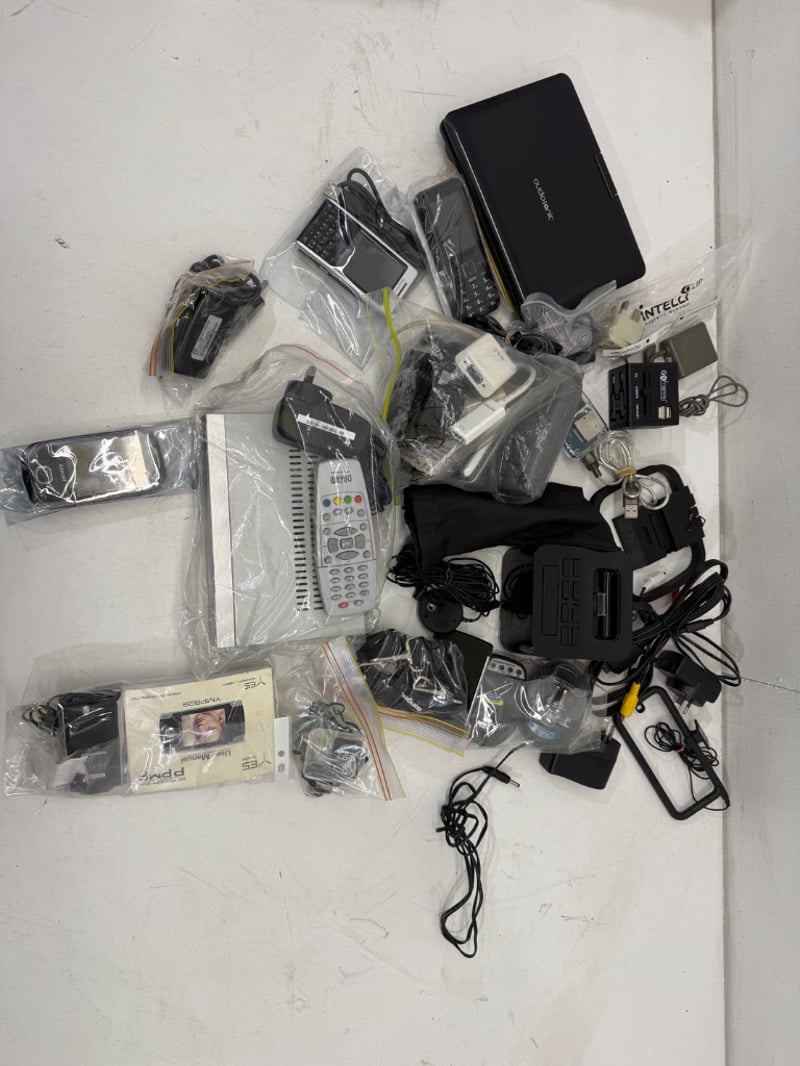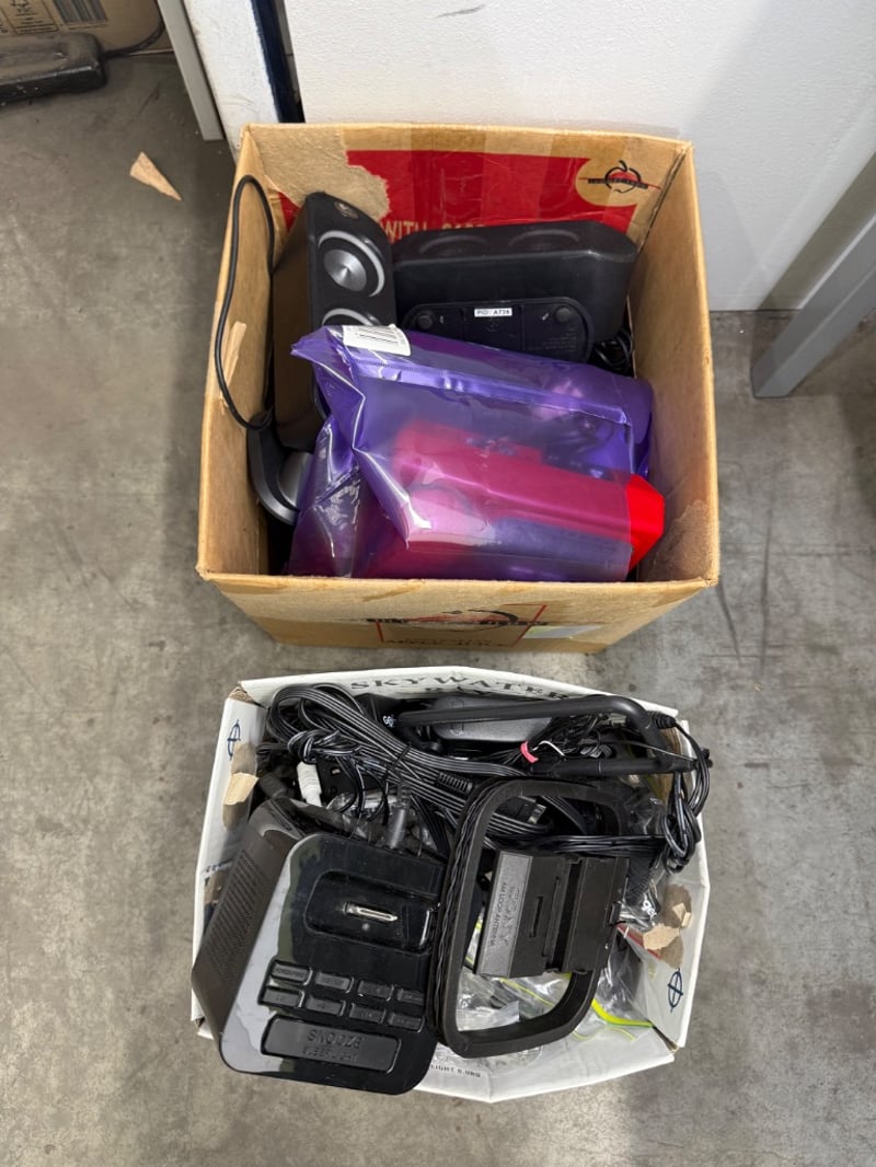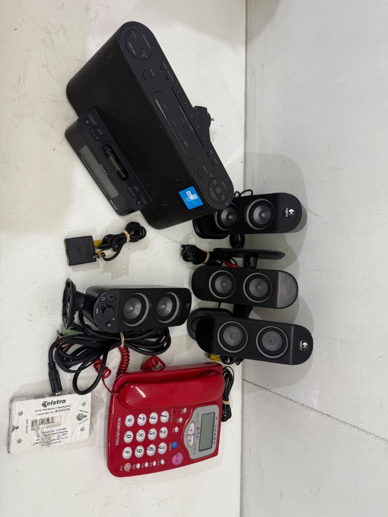 Electronics, Assorted Electronics including Speakers, Alarms, Phones, Cables etc. Assorted Brands including Sony, Logitech etc. Quantity-1 Sold as lot