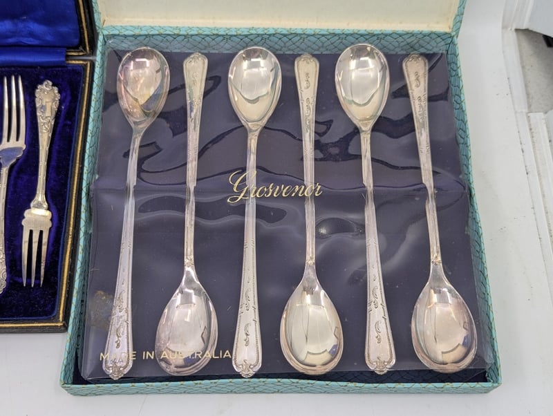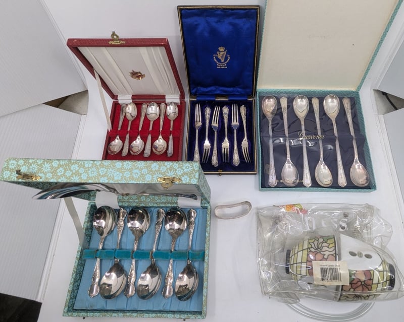 COLLECTION OF COLLECTABLE CUTTLERY IN BOXES AND TABLEWARE ITEMSItems Include Napkin Holder With Engraved Exterior, Tableware Items In Bag, Four Sets Of Collector Cuttlery11B587731+1