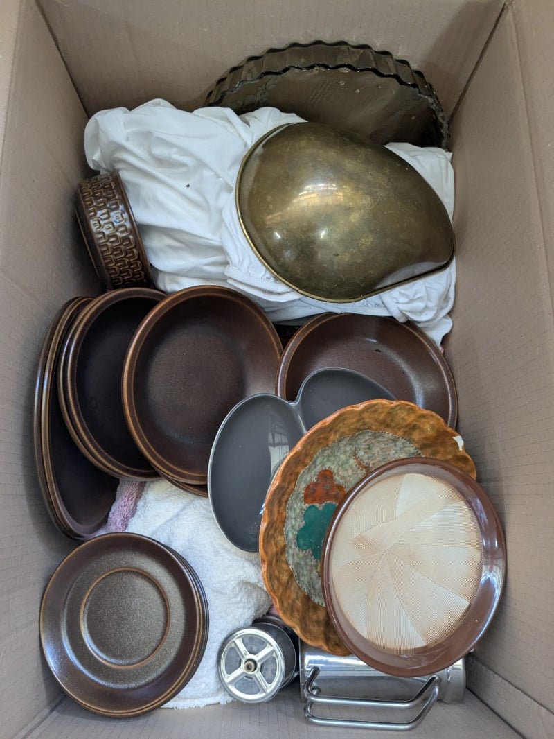 Homewares, including kitchen appliance, Wedgwood Brown Glaze ceramic dinnerware, stainless steel pots and more Sold as lot