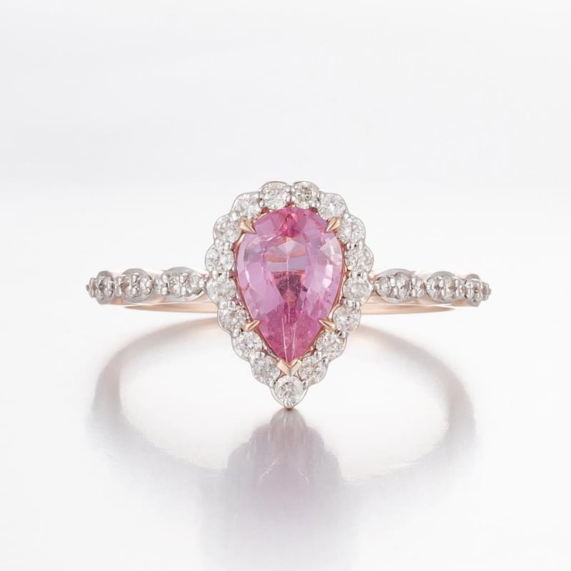 14CT ROSE GOLD PINK CEYLON SAPPHIRE AND DIAMOND HALO RING 14Ct Rose Gold Pink Ceylon Sapphire And Diamond Halo Ring Featuring Centre, One Pear Cut, Medium Vivid Orange Pink Ceylon Sapphire (1.09Ct, Moderate Inclusions), Claw Set, With 35 Round Brilliant Cut Diamonds (0.33Ct Tdw, G-H Colour, Si1-Si2 Clarity), Bead Set. Ring Size O. Valuations Provided by an Independent Third-Party Professional Not Directly Associated With Lloyds Auctions at AUD $18500This valuation has been conducted by an independent third-party professional. The valuation amount is an assessment by the issuing valuer and does not reflect the auction value of the item. Any inquiries regarding the valuation should be directed to the issuing valuer (refer to contact details on the certificate), as Lloyds Auctions has no affiliation or influence over the valuation, the valuer, or the stated amount. Condition: Good - Refer Images 0+1545