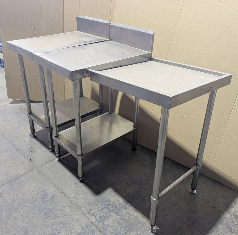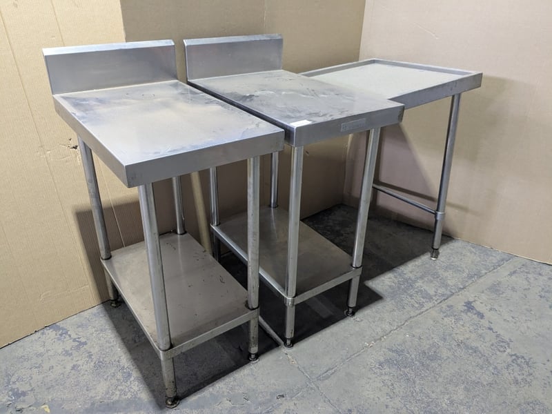 Steel Tables, 2x Stainless Steel Tables, and 1x Stainless Steel End Piece