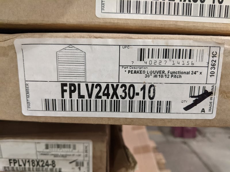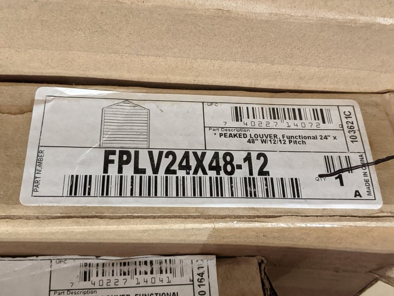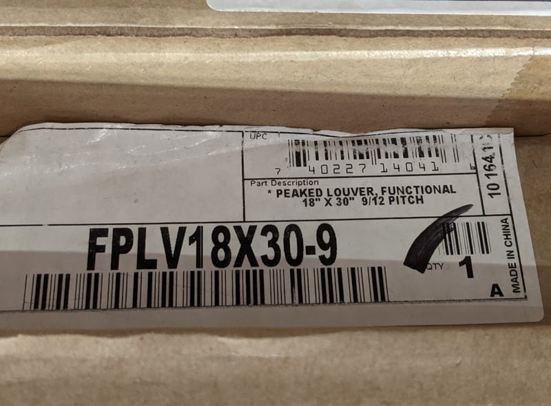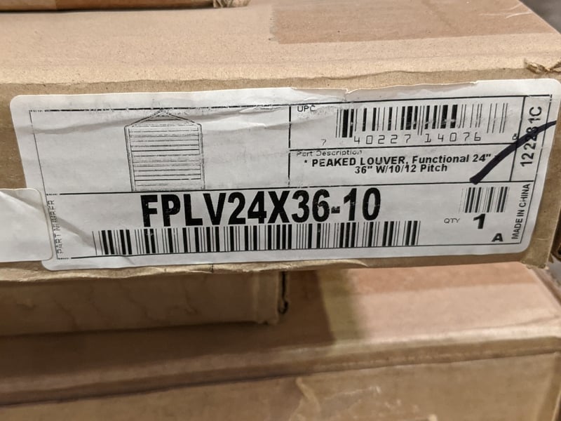 - FPLV18X36-10, Peaked Louver, Functional 18'' x 36'' W/10/12 Pitch