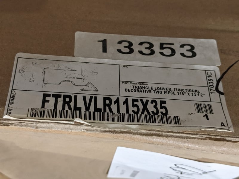 - FTRLVLR115X35, Triangle Louver, Functional Decorative Two Piece 115'' x 34 1/2''