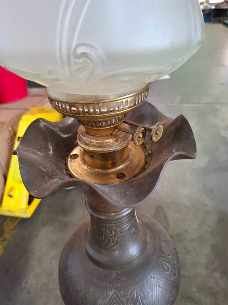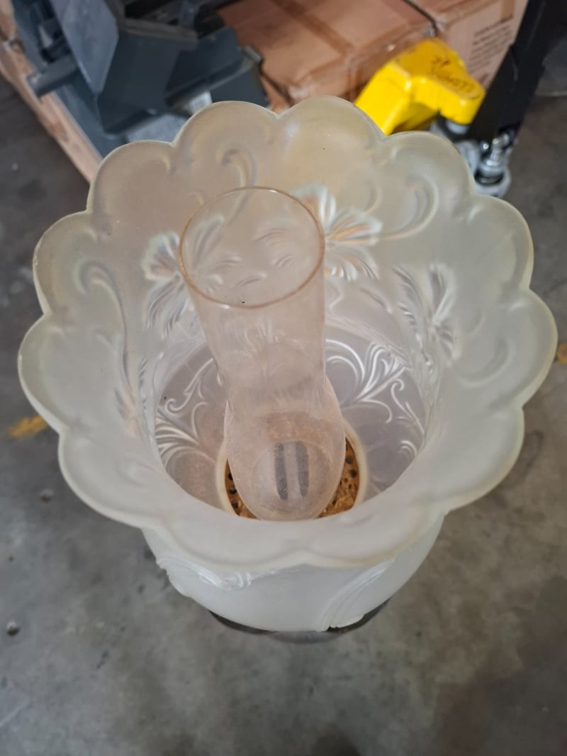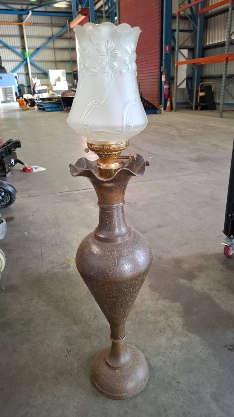 Metal Stand Kerosene Lamp With Glass Lamp Shade Note: Working Condition Unknown