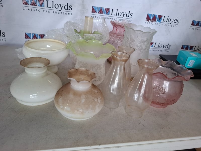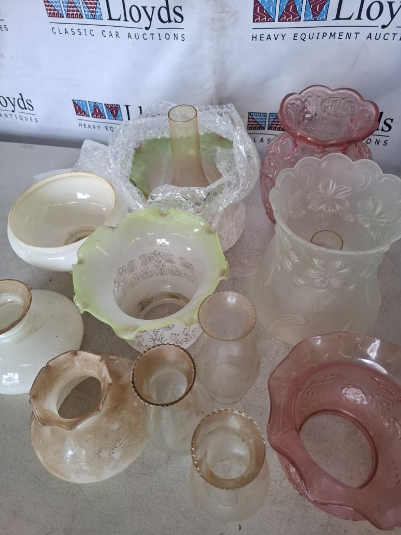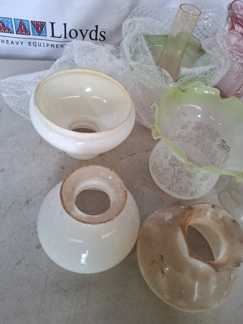 Assortment Lot Of Oil Lamp Glassware, Different Sizes From 13cm(H) – 26cm(H)