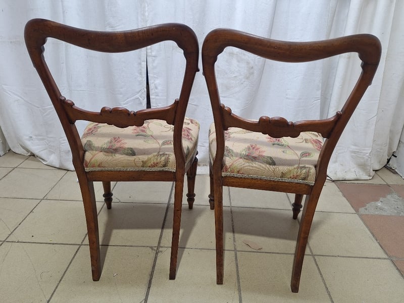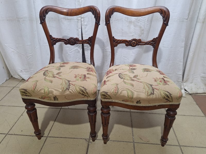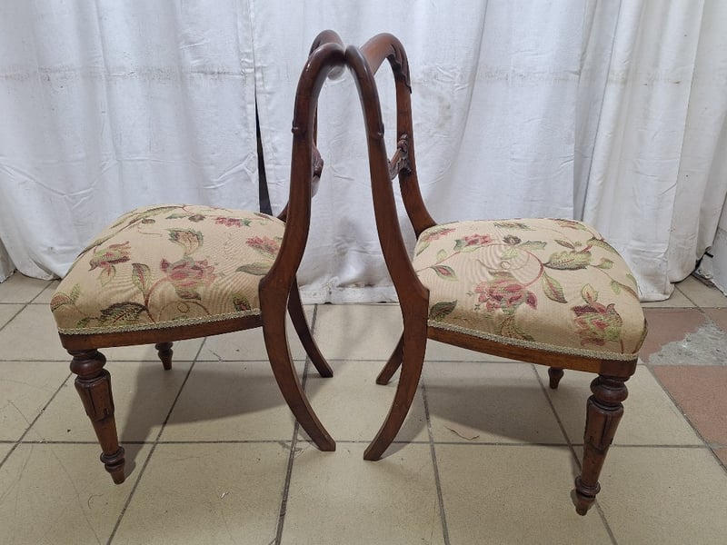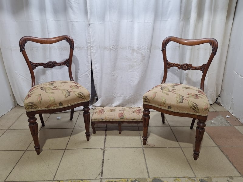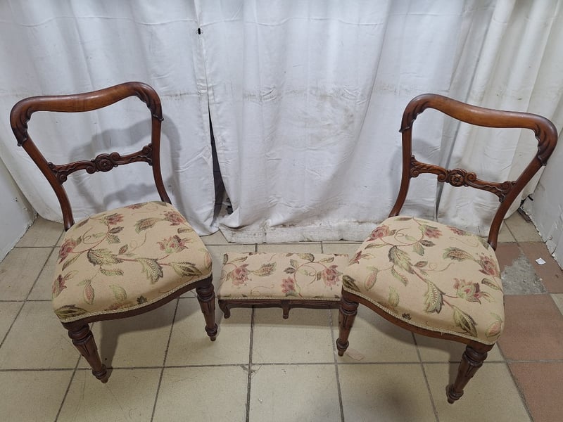 Set Of Chairs With x1 Matching Footstool With Floral Upholstery, Timber Style, Brown Finish