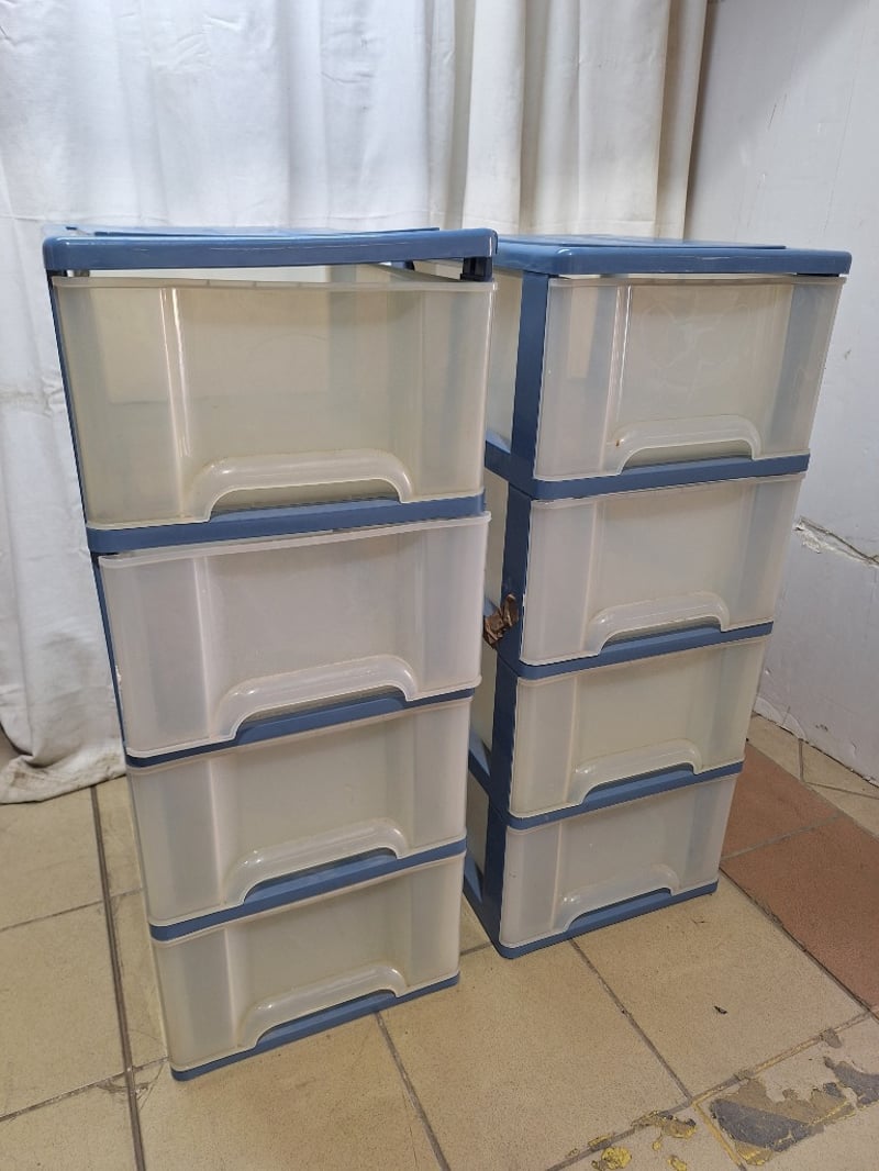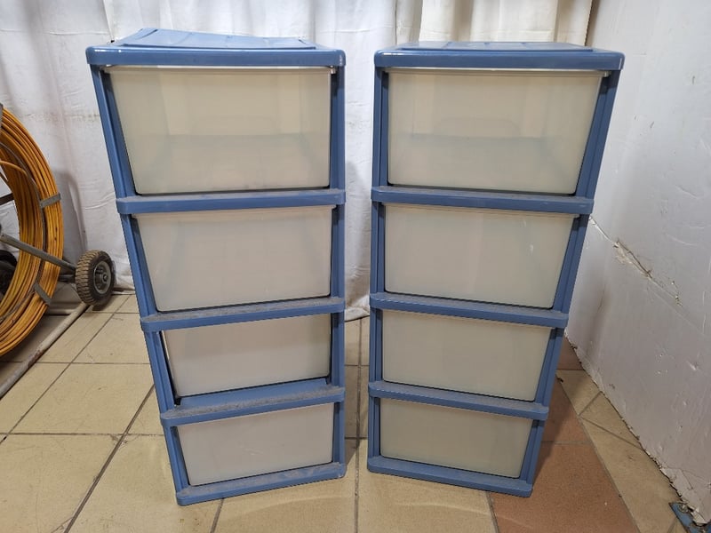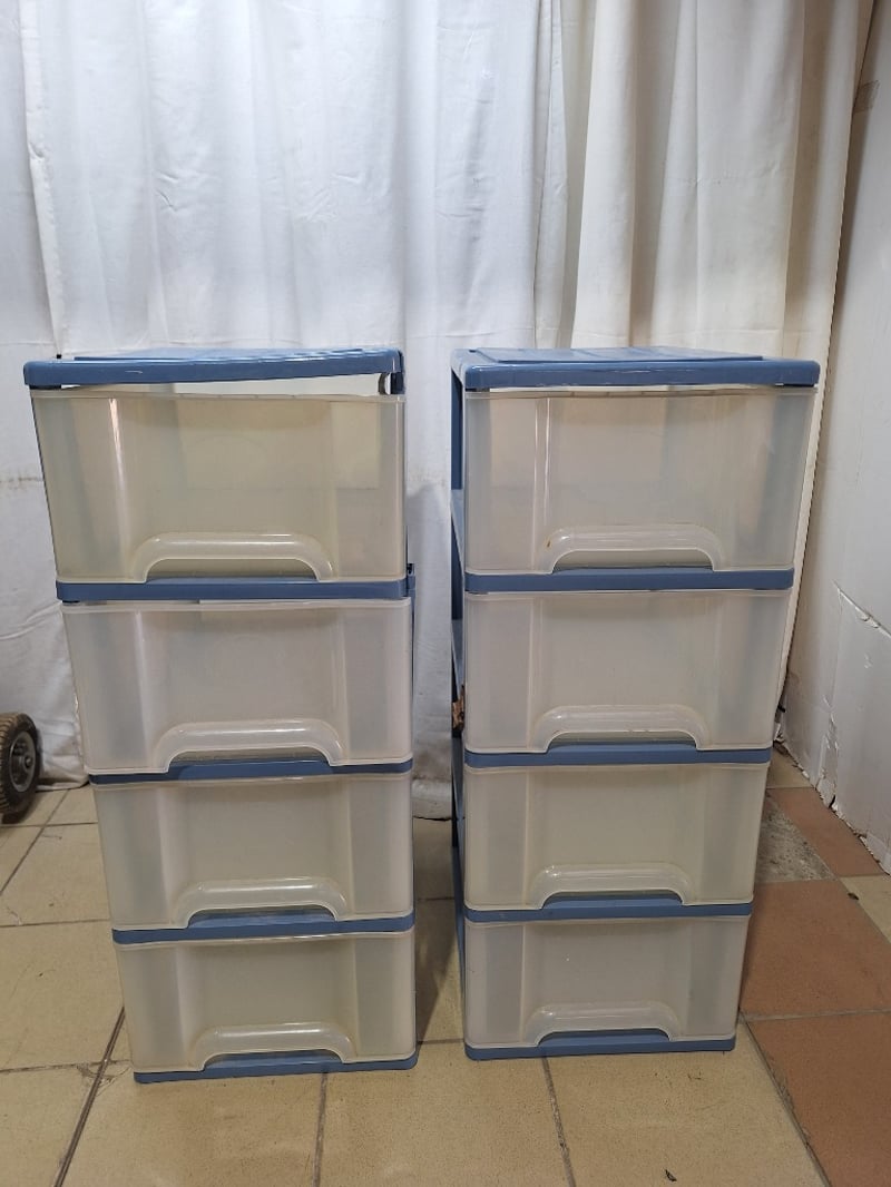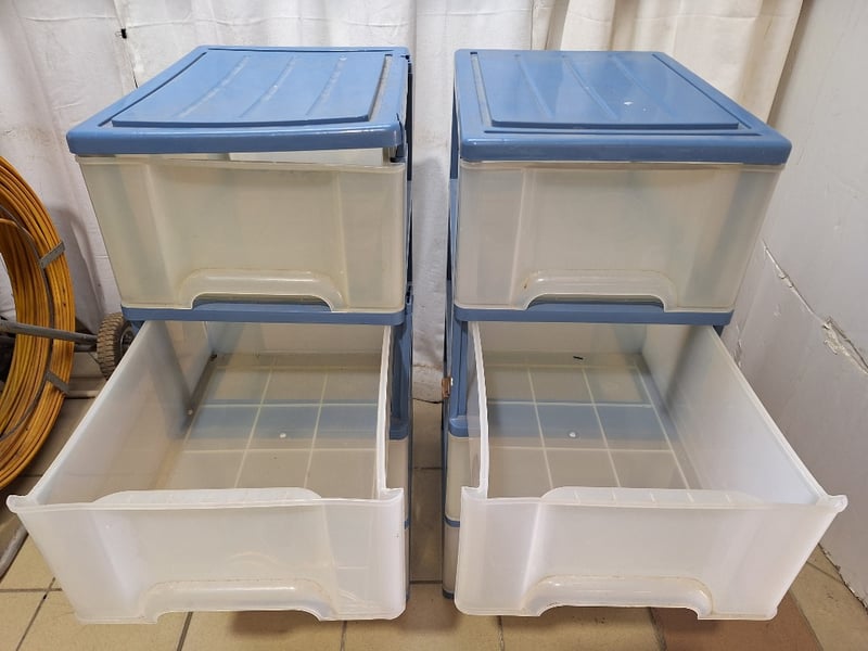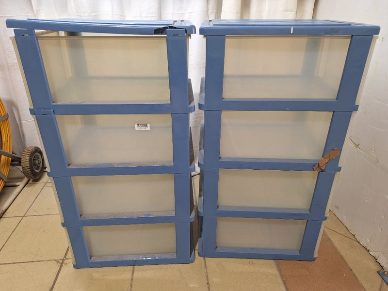Set Of Plastic Style Storage Drawer Units, Blue Finish