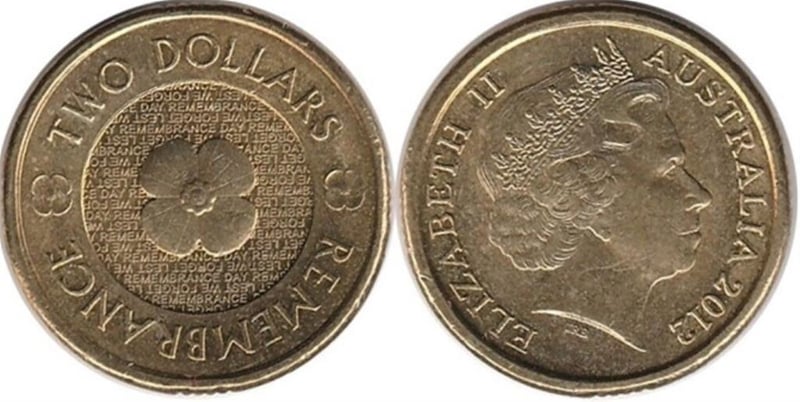 AUSTRALIA: 2012 TWO DOLLARS QEII REMEMBRANCE $2 23528+89