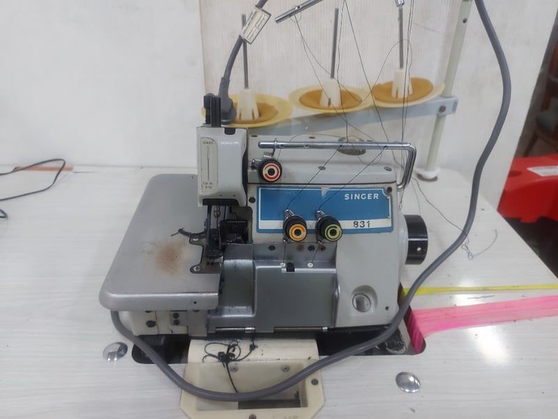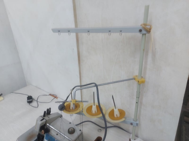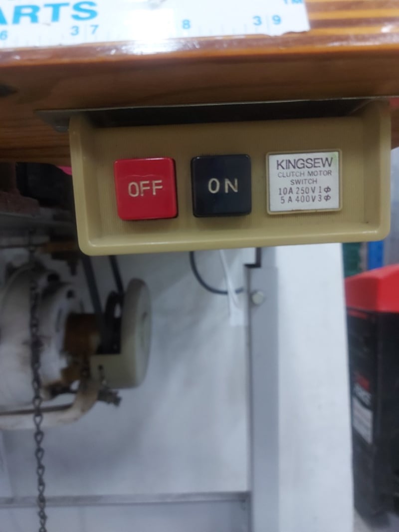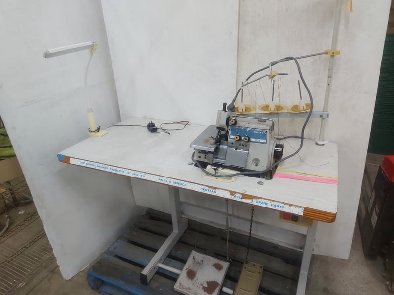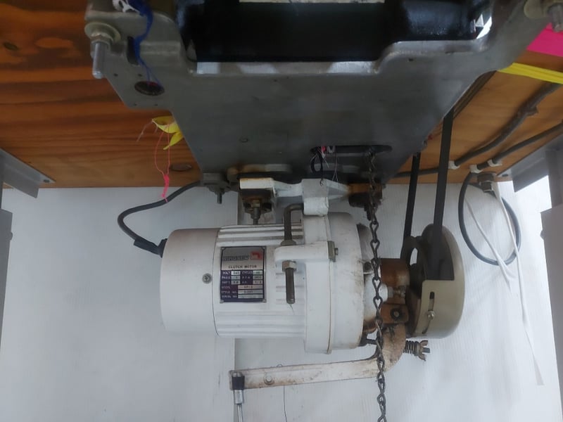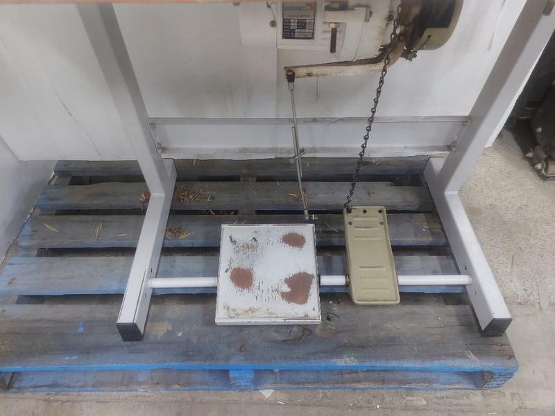 Sewing machine with desk and foot pedals+ desk lampApproximate Dimensions: H 120cm x W 110cm x D 58cm
