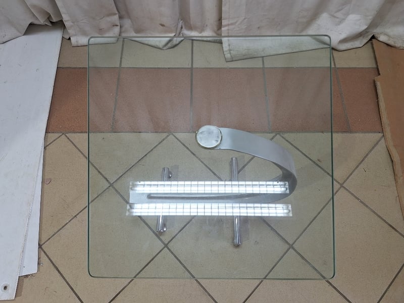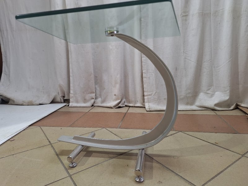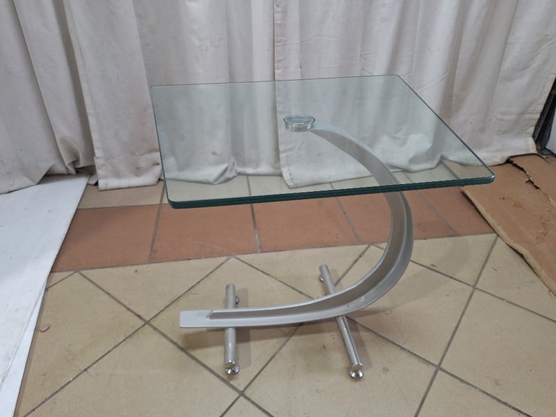 Side Table With Glass Top, Metal Style, Silver Finish Dimensions H:51cm W:56cm D:52cm