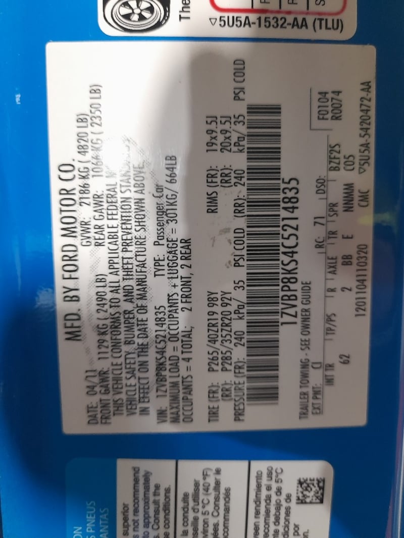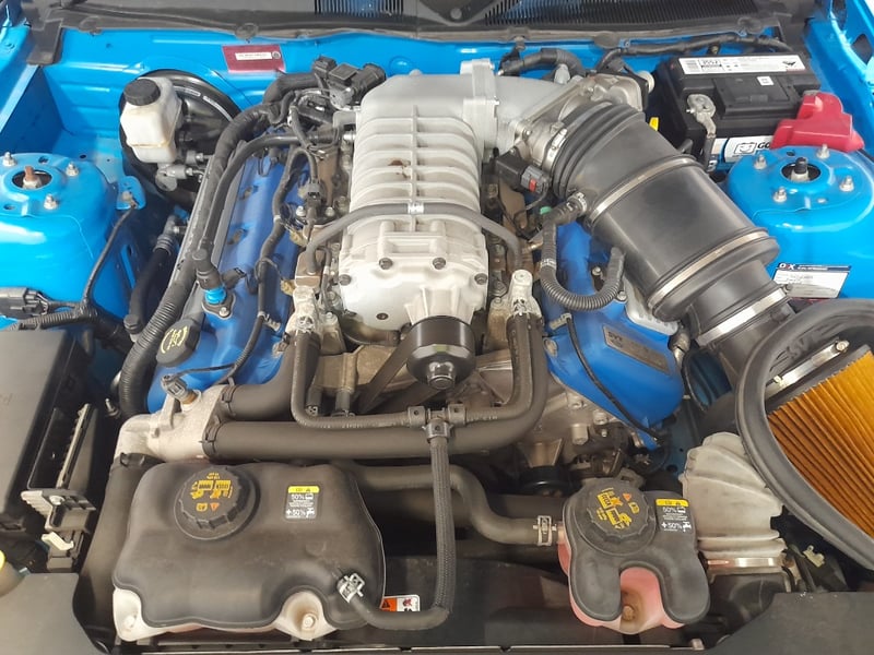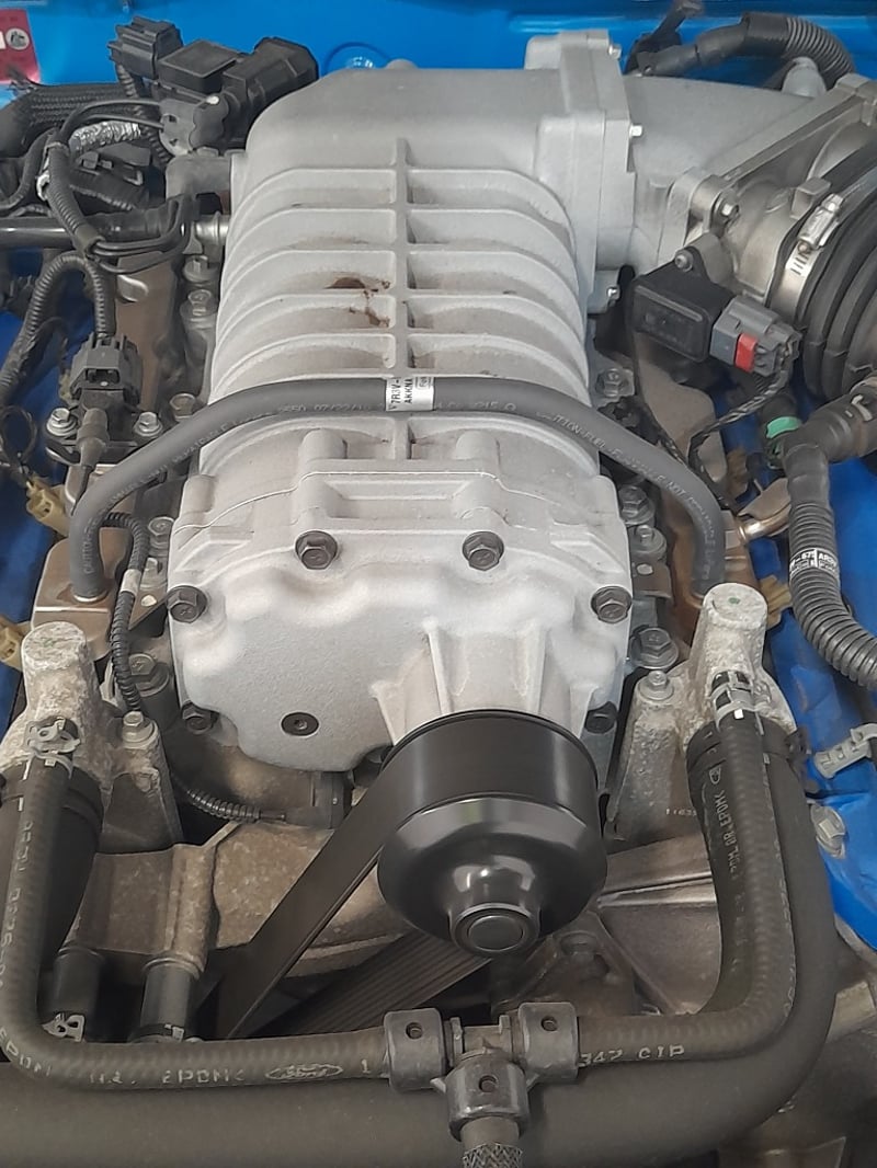 Convertible 2 door Mustang 500 coupe super charged 5.4 litre V8 engine, manual 6 speed transmission, multifunction steering wheel, 2 key, low kilometres Missing some paint under number plate.