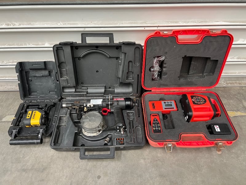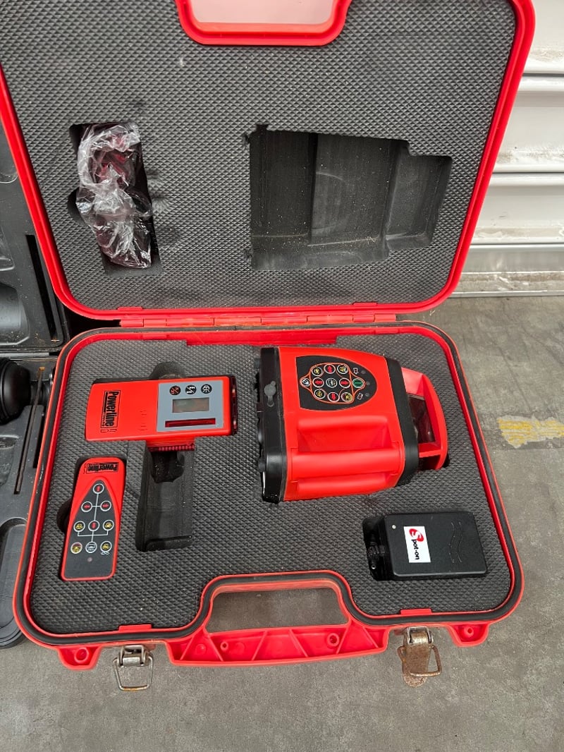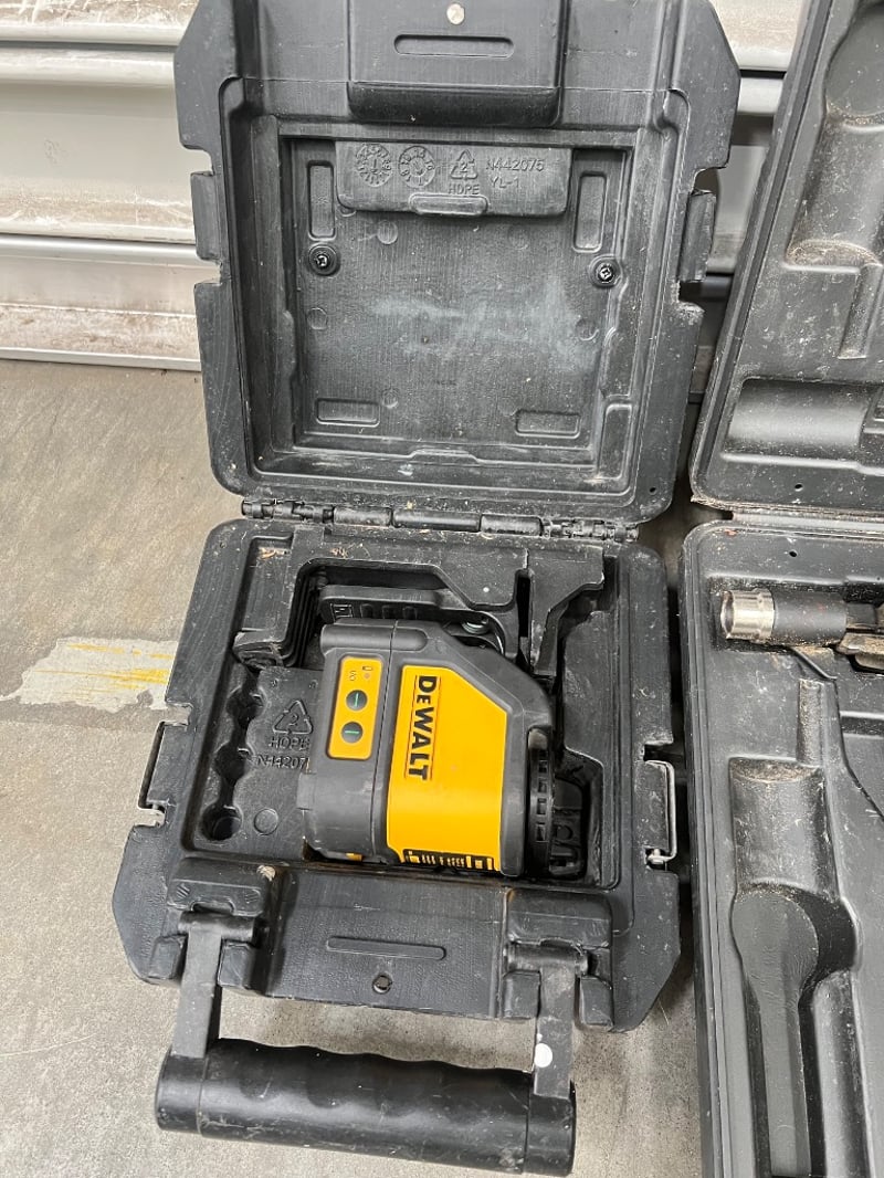 Assorted tools, brands include; powerline, Dewalt etc, assorted models, includes; dumpy level, laser etc